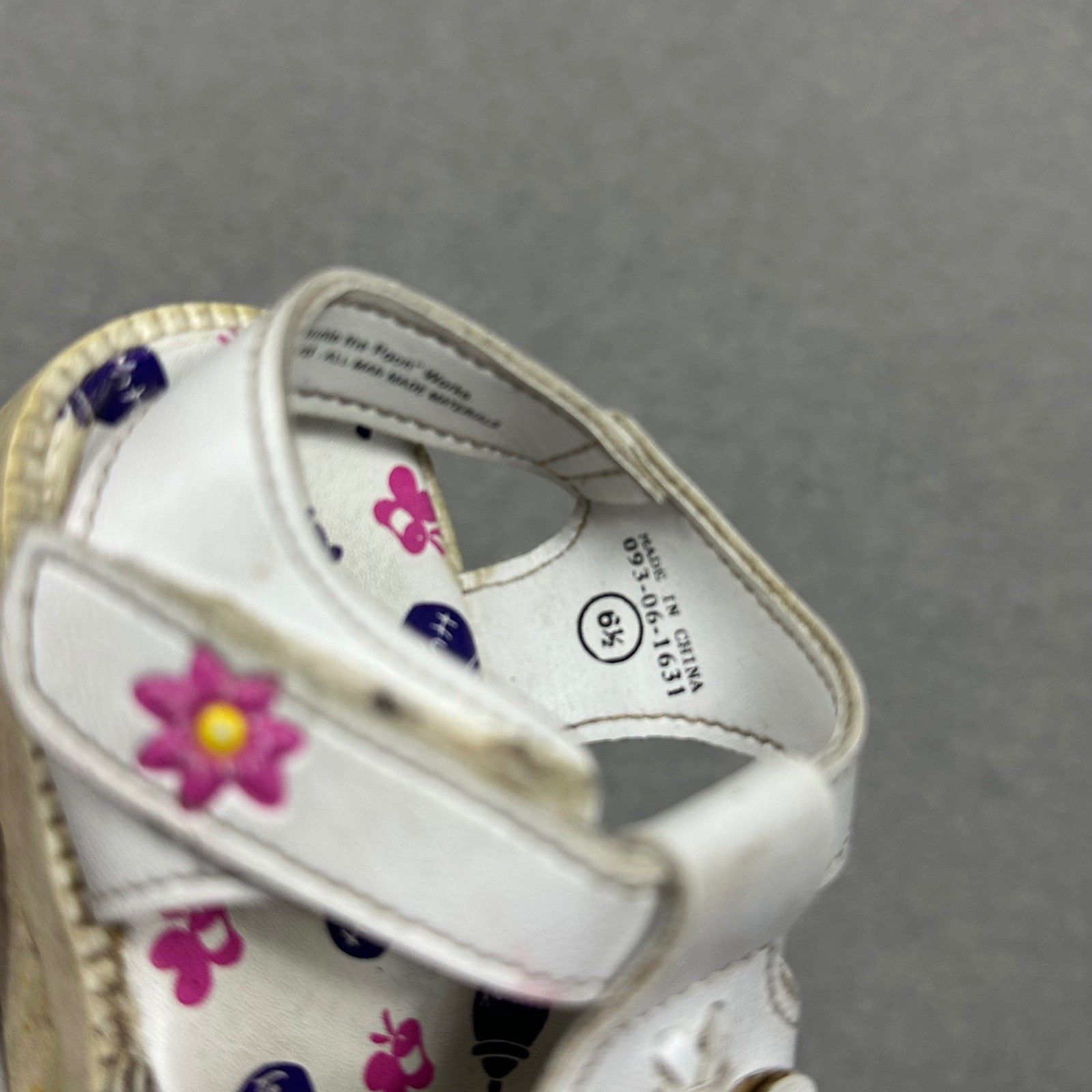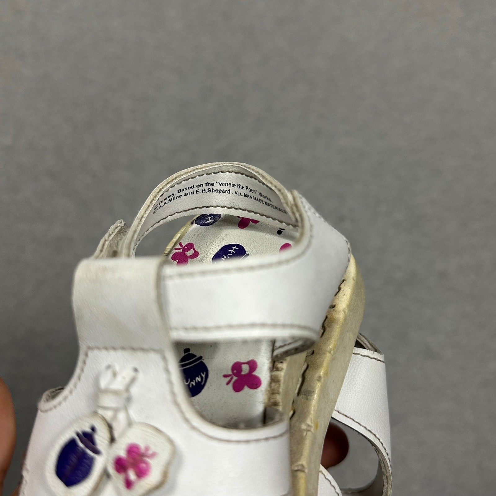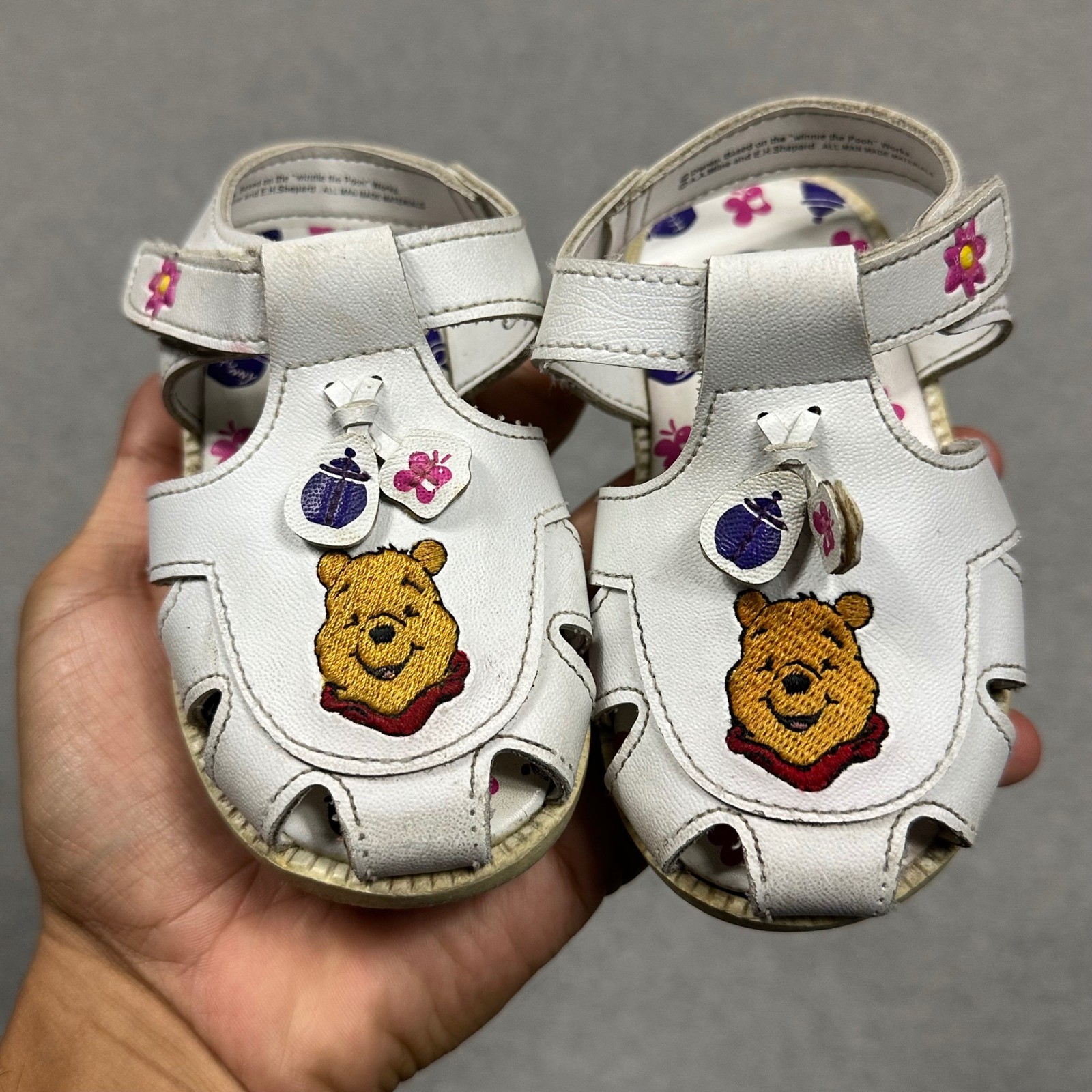 Vintage Winnie The Pooh Sandals Toddler Size 6.5 White Adjustable Loop Flowers