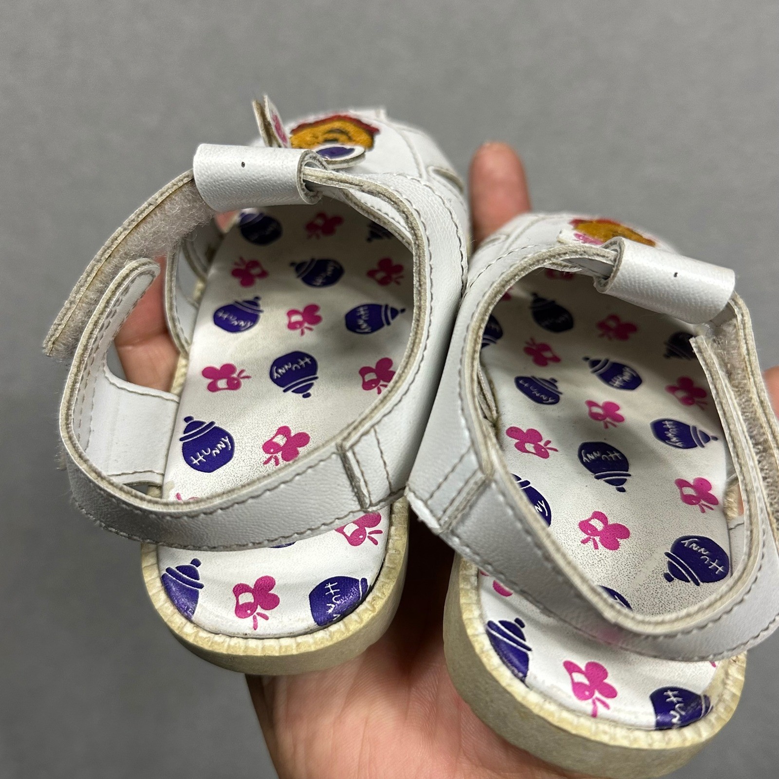 как выглядит Vintage Winnie The Pooh Sandals Toddler Size 6.5 White Adjustable Loop Flowers фото