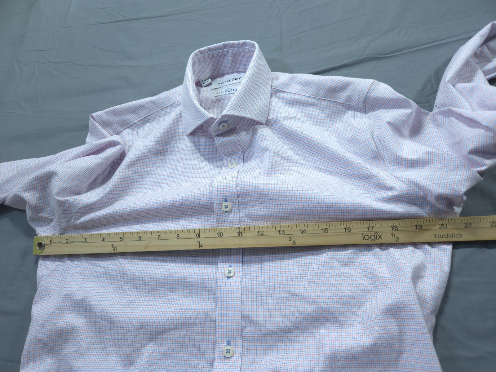 как выглядит Twillory Shirt Mens 15.5-32/33 Medium Pink Bpue White Plaid Trim Fit Dress фото
