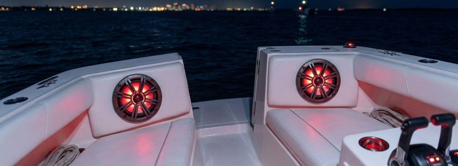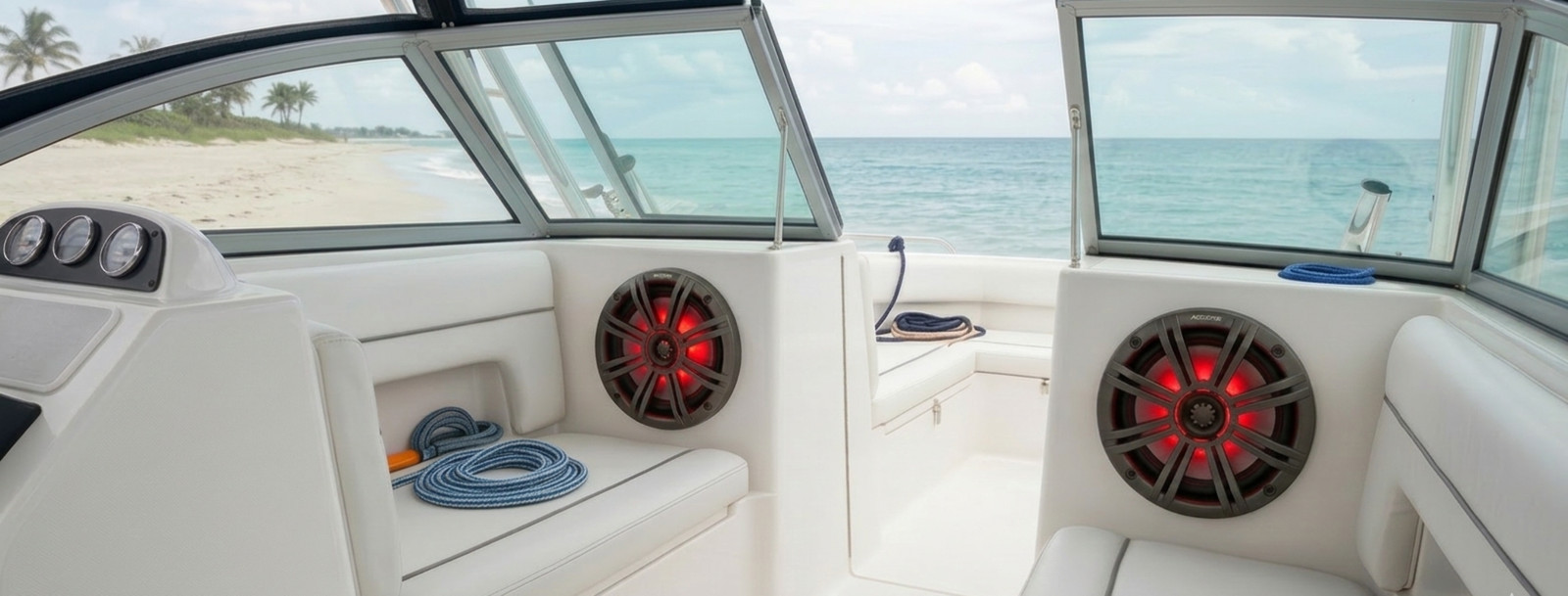 Kicker 45KM84L KM 8 Marine Coaxial Speakers w/ LEDs 300W Charcoal White Grille