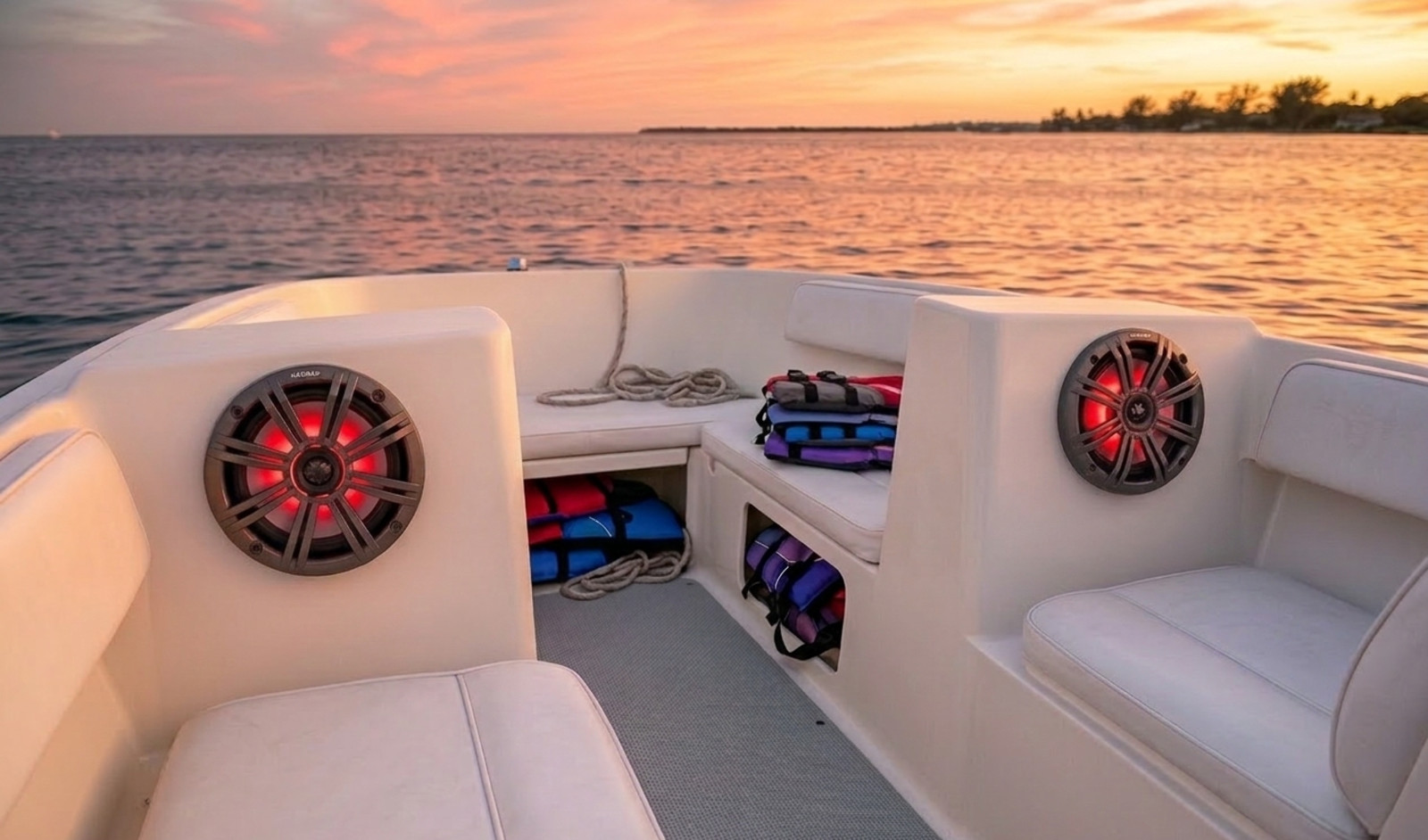 как выглядит Kicker 45KM84L KM 8" Marine Coaxial Speakers w/ LEDs 300W Charcoal White Grille фото