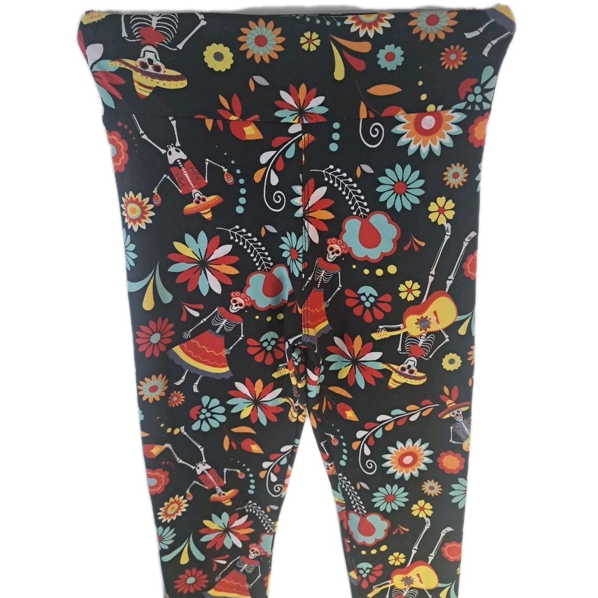 LuLaRoe Tween Leggings Dia De Los Muertos Skeleton Floral Day of Dead Skulls