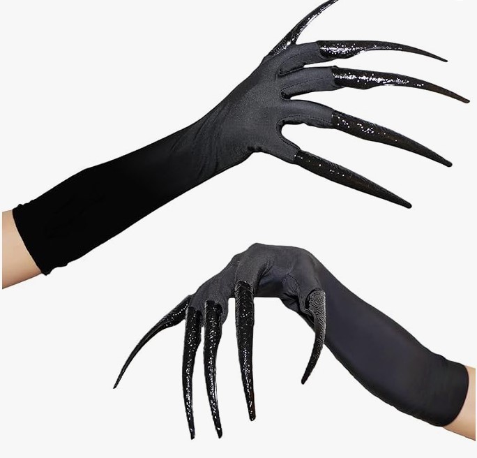 Long Finger Claw Gloves, Halloween Black Paw Gloves For Scary Vampire Witch Demo