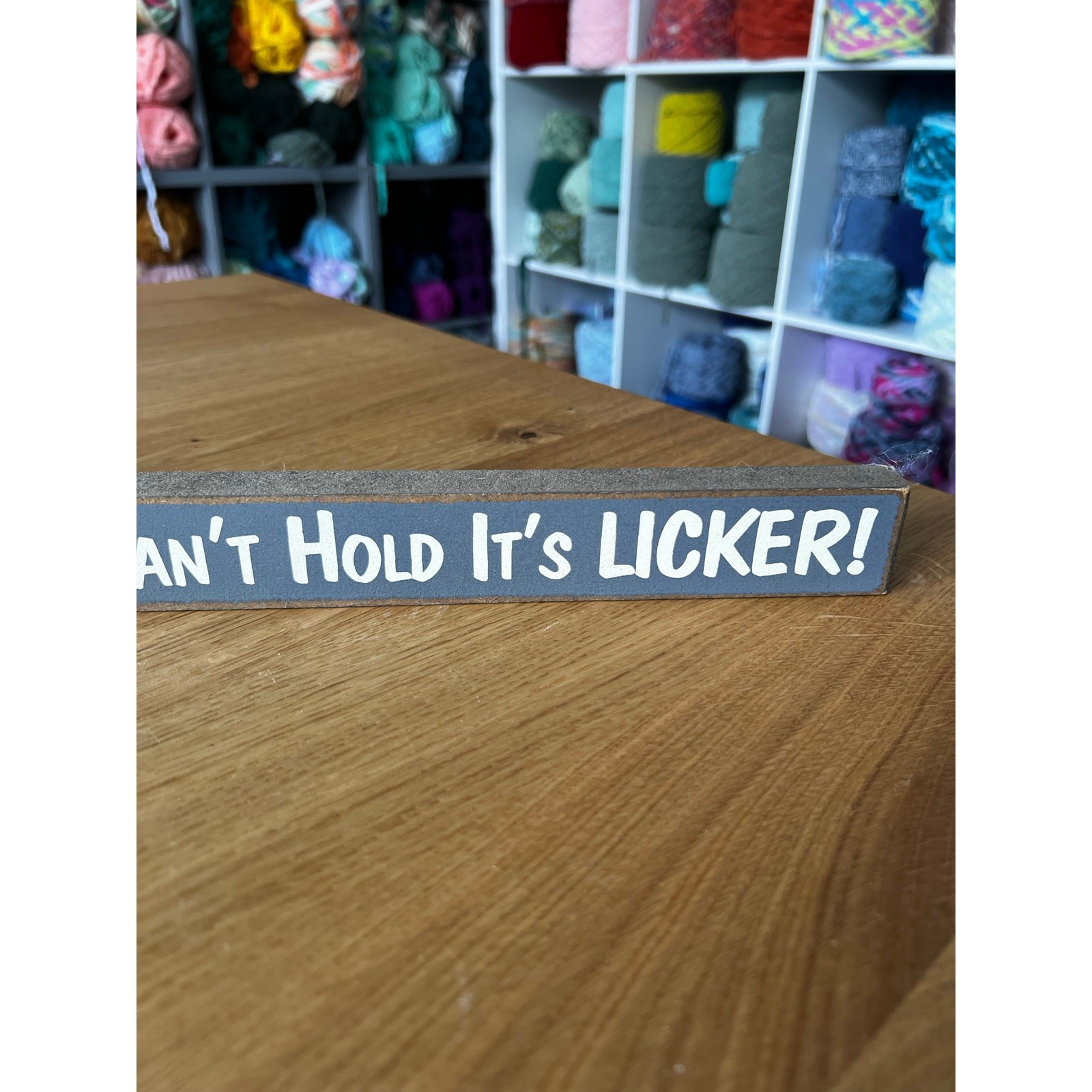 Long Wood Sign Caution Dog Can't Hold it's Licker Decor Pet Lover