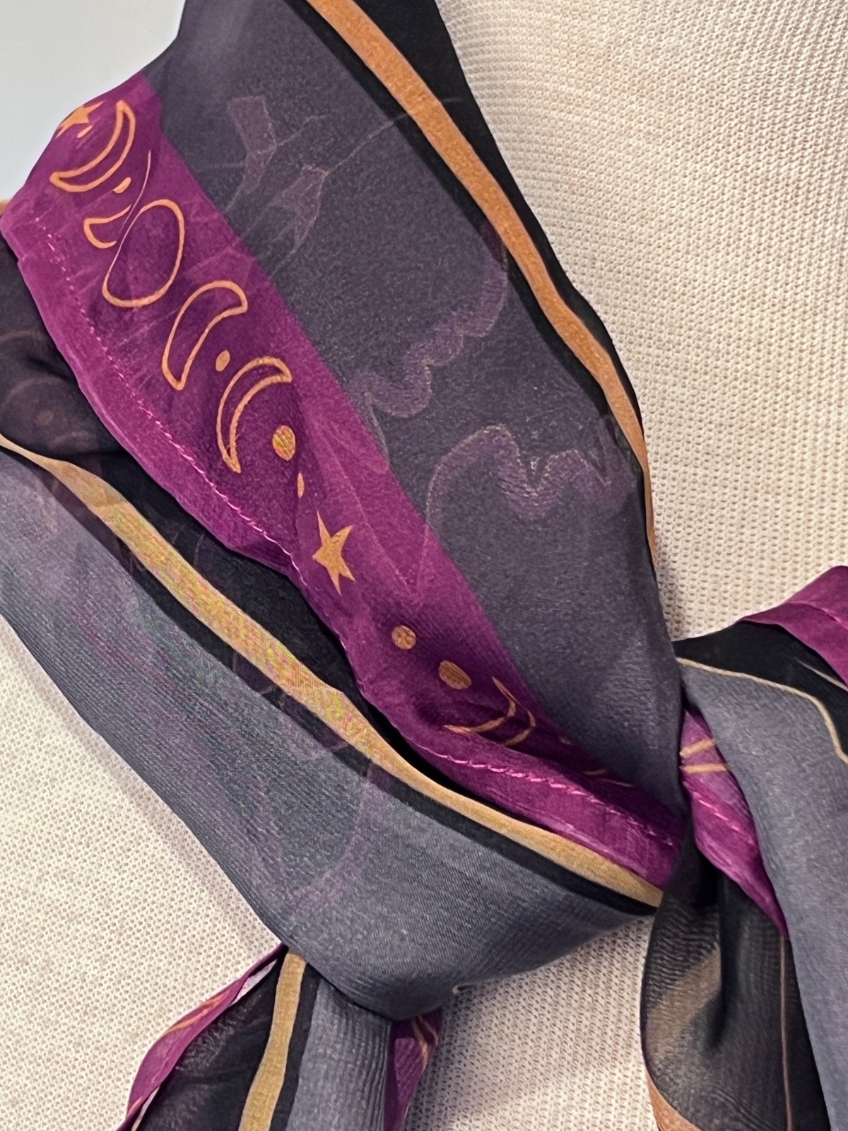 UNIQUE VINTAGE PURPLE BLACK MYSTICAL ICONS HAIR SCARF
