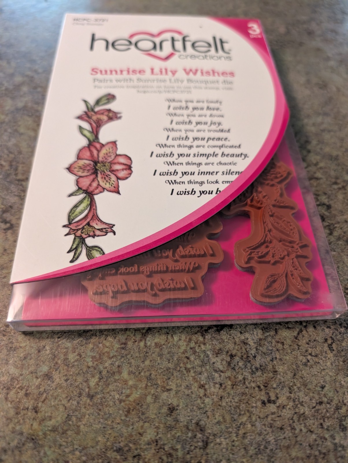 как выглядит NEW Heartfelt Creations Cling Stamps 3pc SUNRISE LILY WISHES HCPC-3721 фото