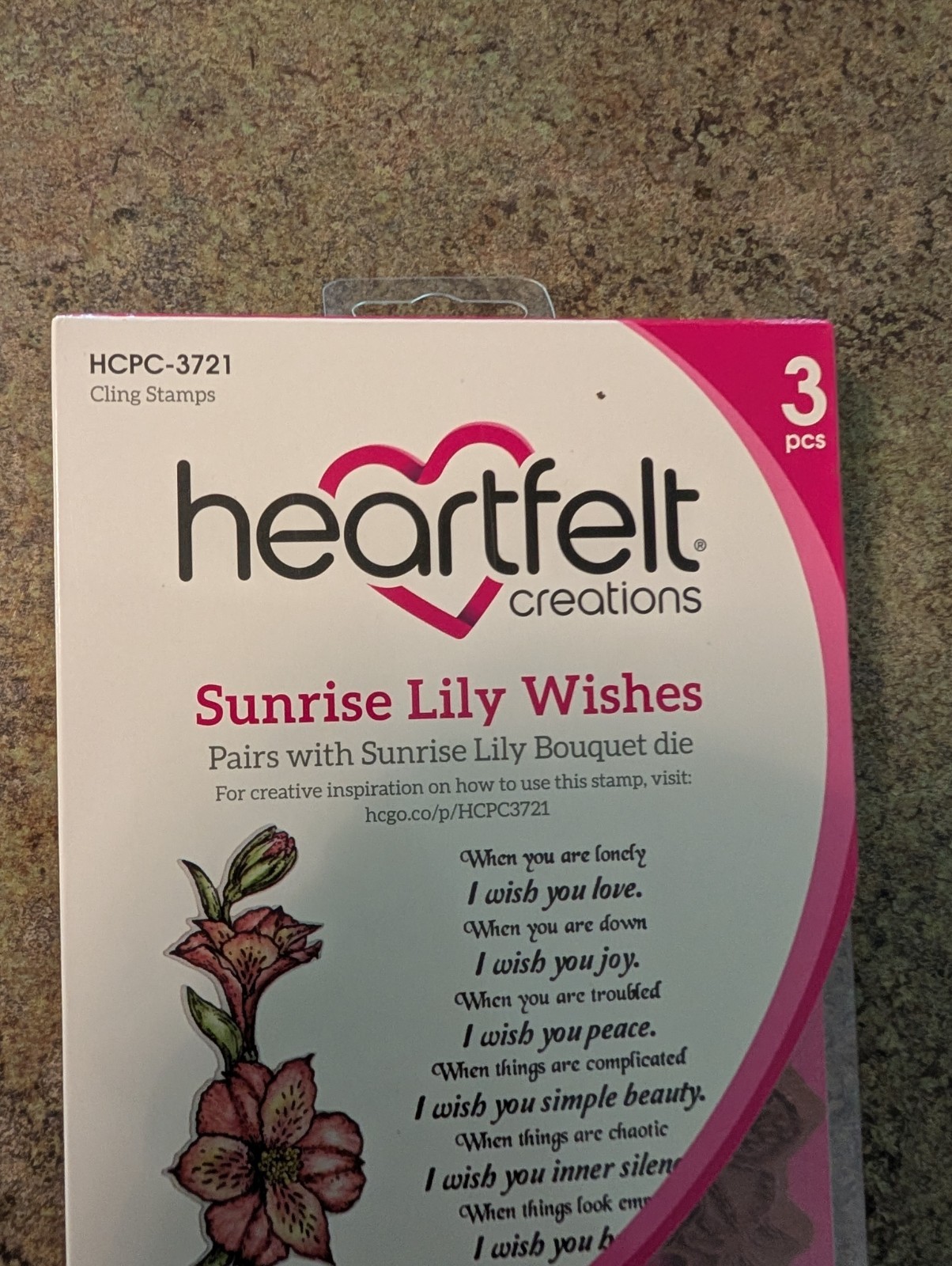 NEW Heartfelt Creations Cling Stamps 3pc SUNRISE LILY WISHES HCPC-3721