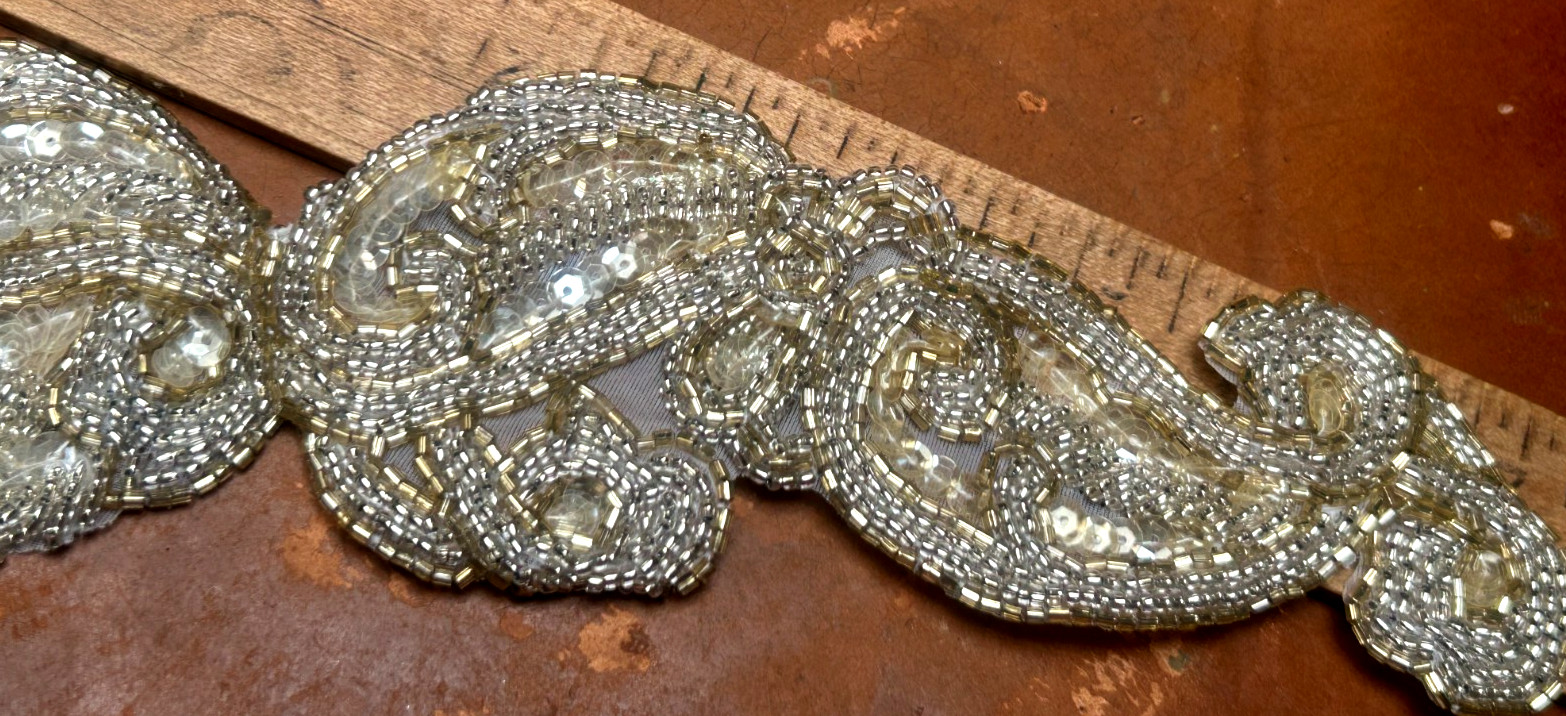 vintage belt sash sequins 4.25x18 glass beads hand sewn 1pc bridal glam deco