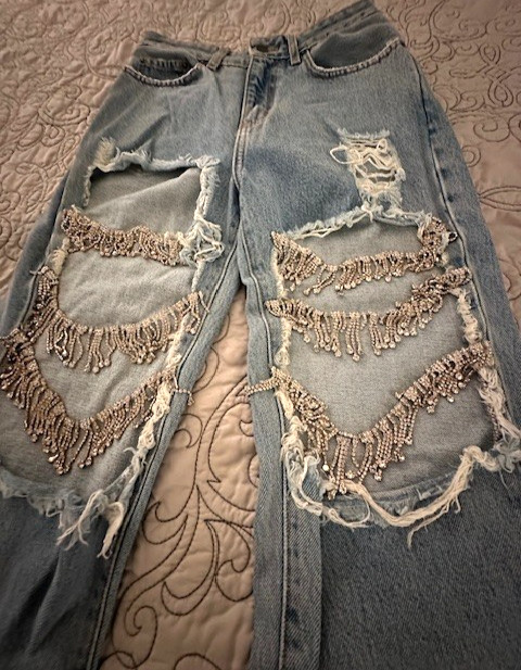 Carmar Distressed Denim Jean with Rhine26stones Size