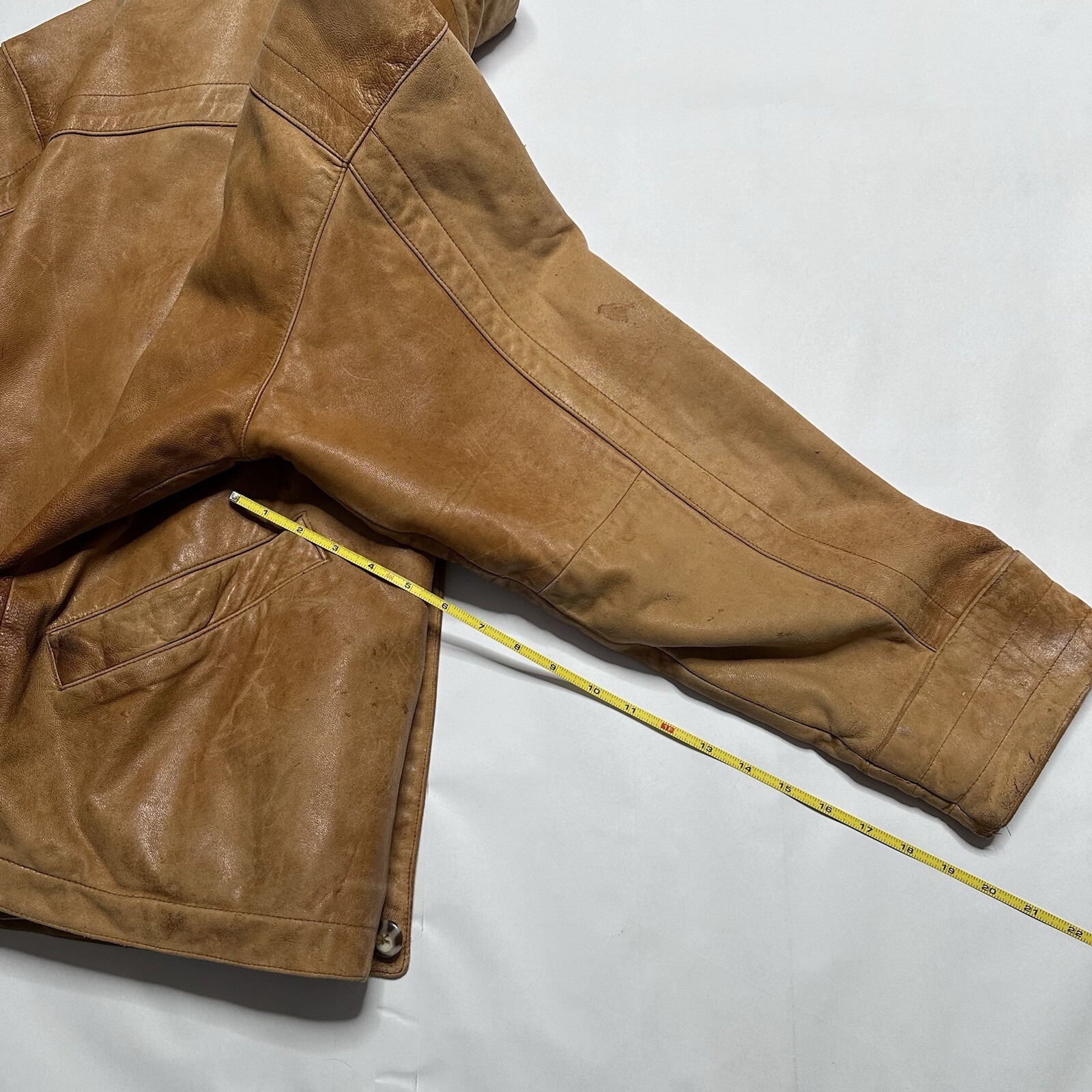 VTG Eddie Bauer Mens Large Brown Distressed Full Zip Leather Jacket Lined