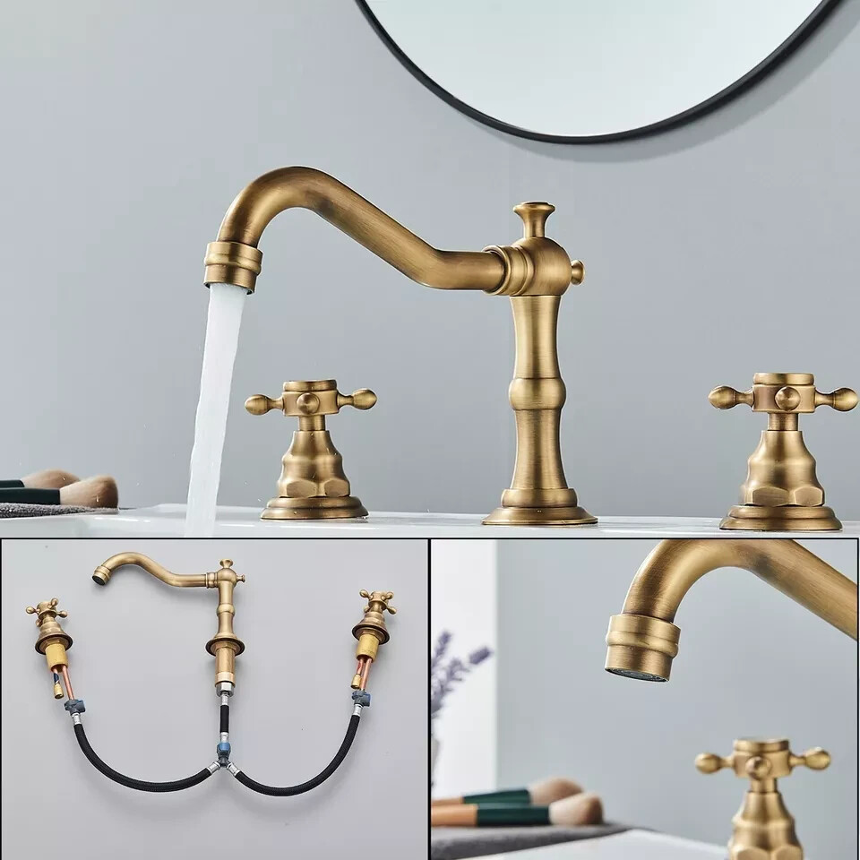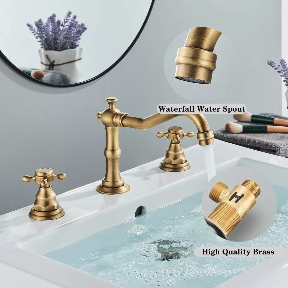 Antique Brass 8 Widespread Bathroom Sink Basin Faucet Vanity 3 Holes Mixer Tap