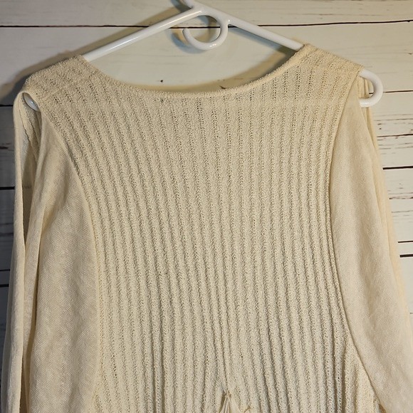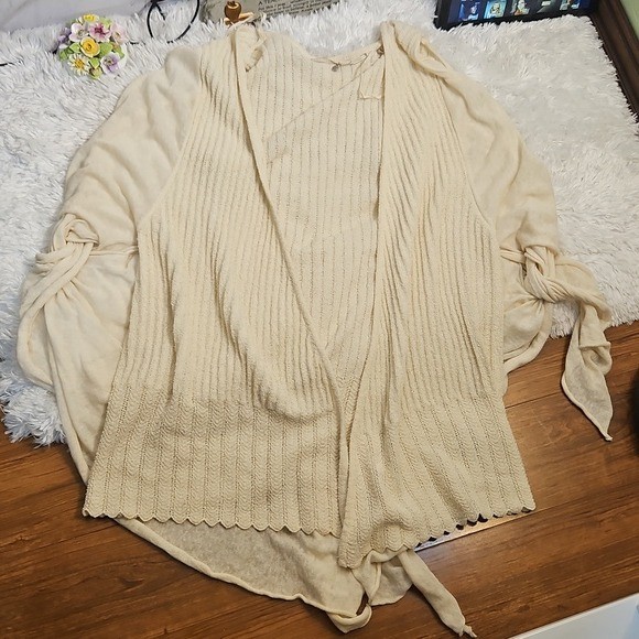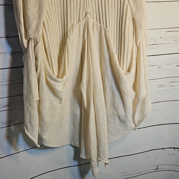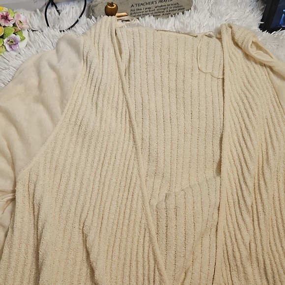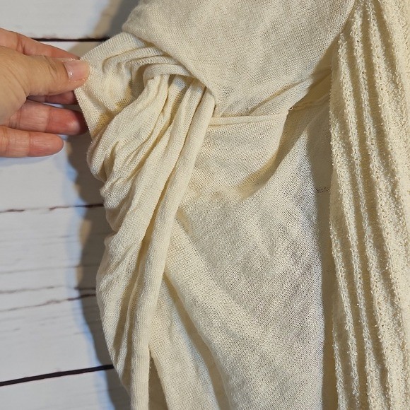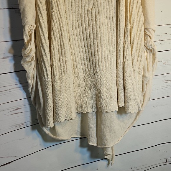 Kimono Cardigan Open Front Sleeves Tie Sheer Layering Knit Cream Bohemian,SM