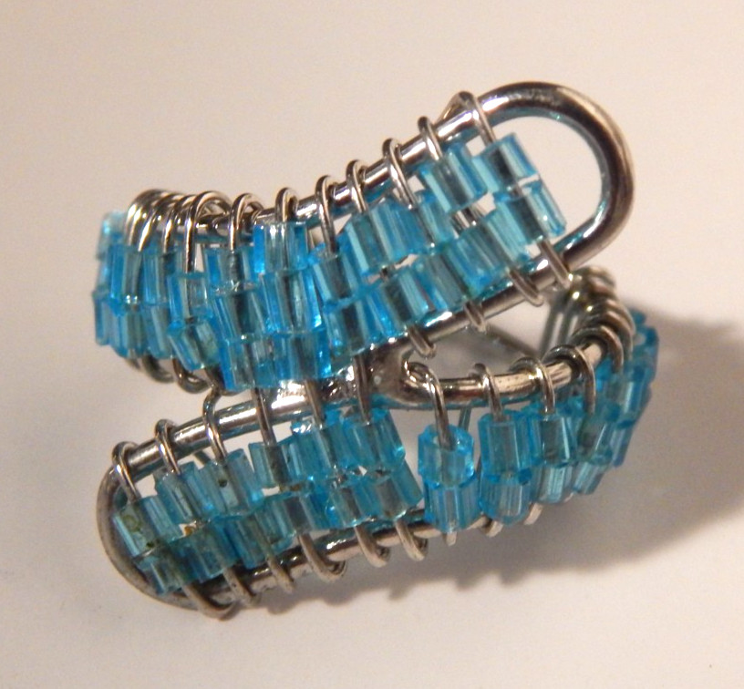 Artist Made Silver Wire Wrap Ring With Faceted Teal Beads Modern adjustable Sz 6