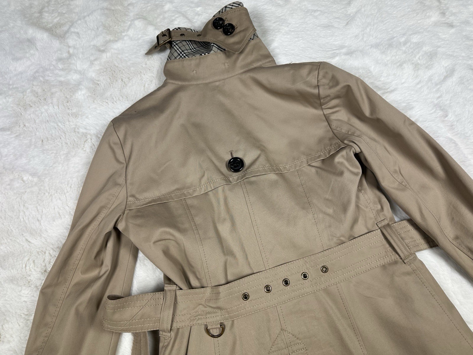 как выглядит VTG Burberry Blue Label belted double breasted trench coat / size 34 фото