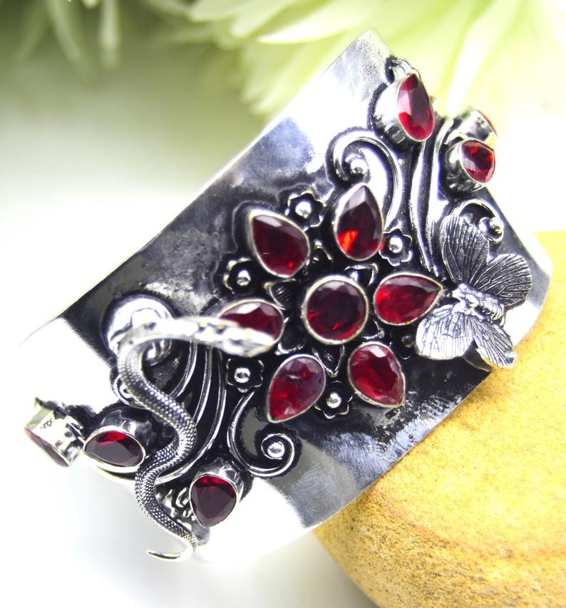 как выглядит 925 Sterling Silver Red Garnet Gemstone Handmade Jewelry Cuff Bracelet -ADJ" фото