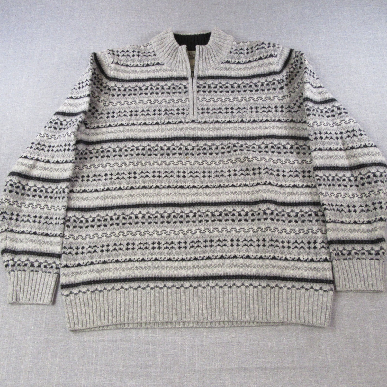 как выглядит L.L. Bean Men s Large 100 Shetland Wool Sweater Gray Fair Isle Quarter Zip фото