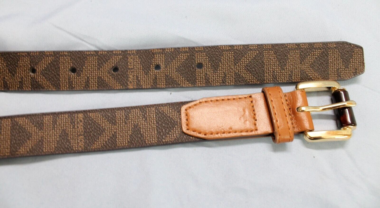 как выглядит MICHAEL KORS Brown SIGNATURE MK LOGO Gold Hardware FAUX LEATHER Waist Belt Sz L фото