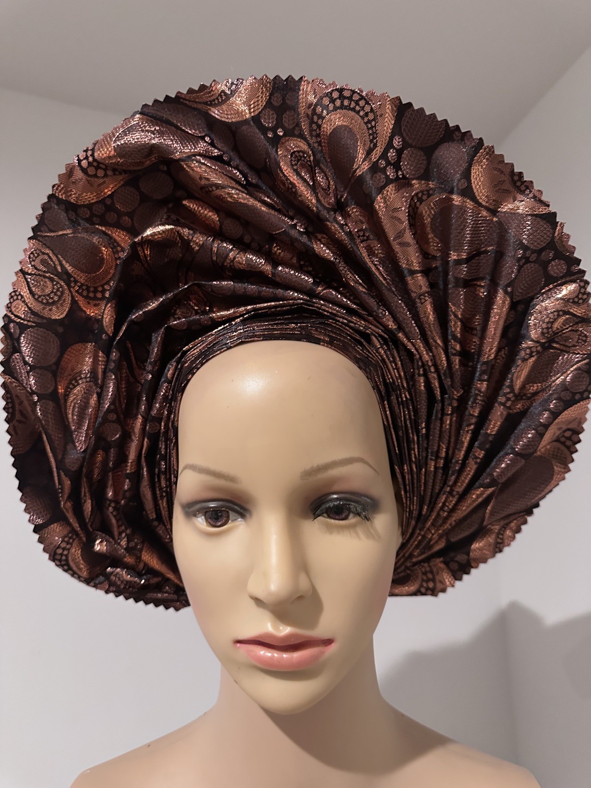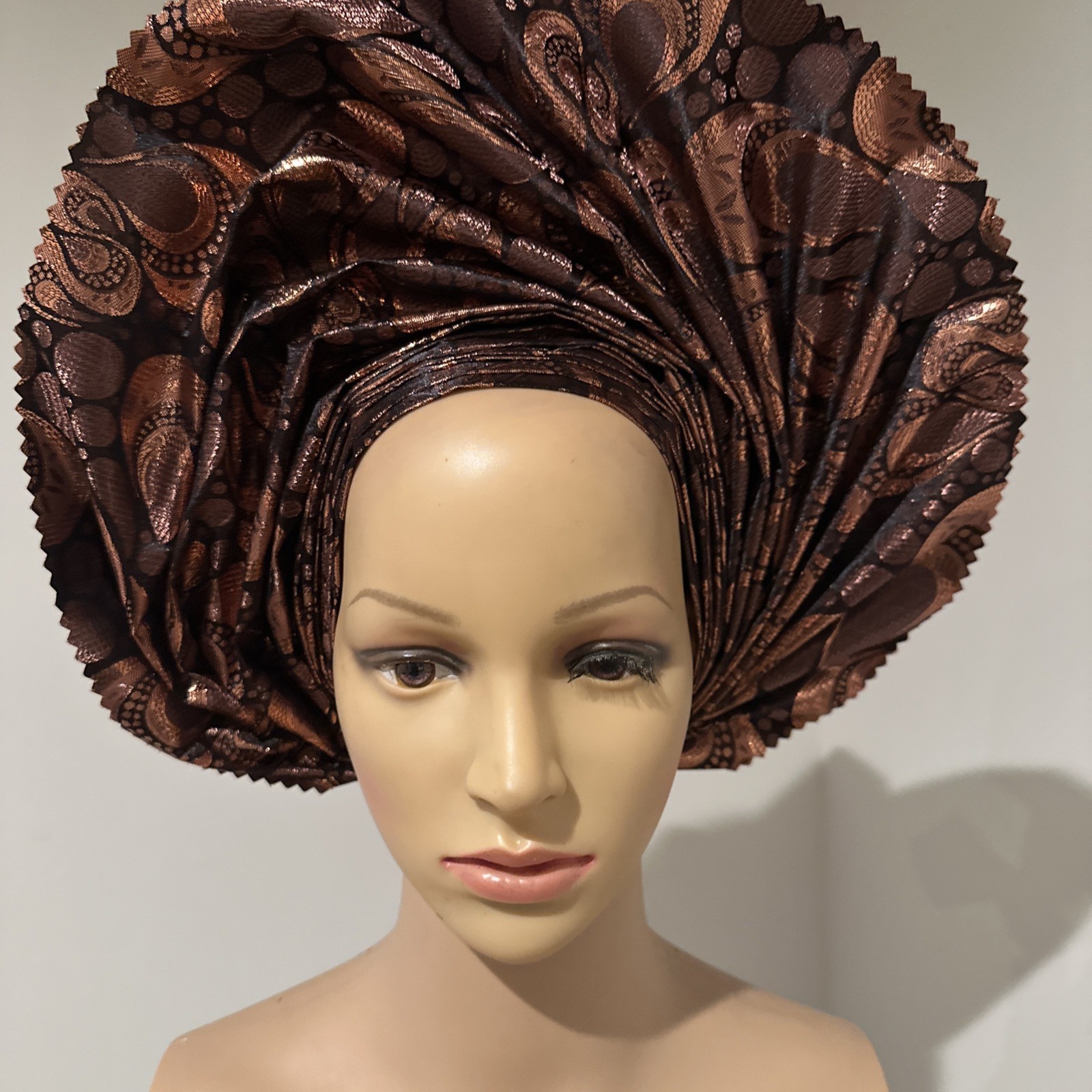 как выглядит Elegant and Beautiful African brown auto gele for women фото