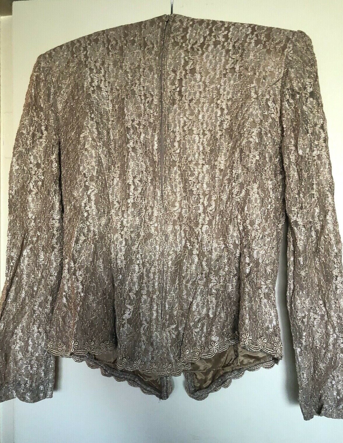 как выглядит Vtg 80s 90s Drape FLORAL Applique LACE Shoulder SEQUIN PEARL TROPHY BLOUSE Top L фото