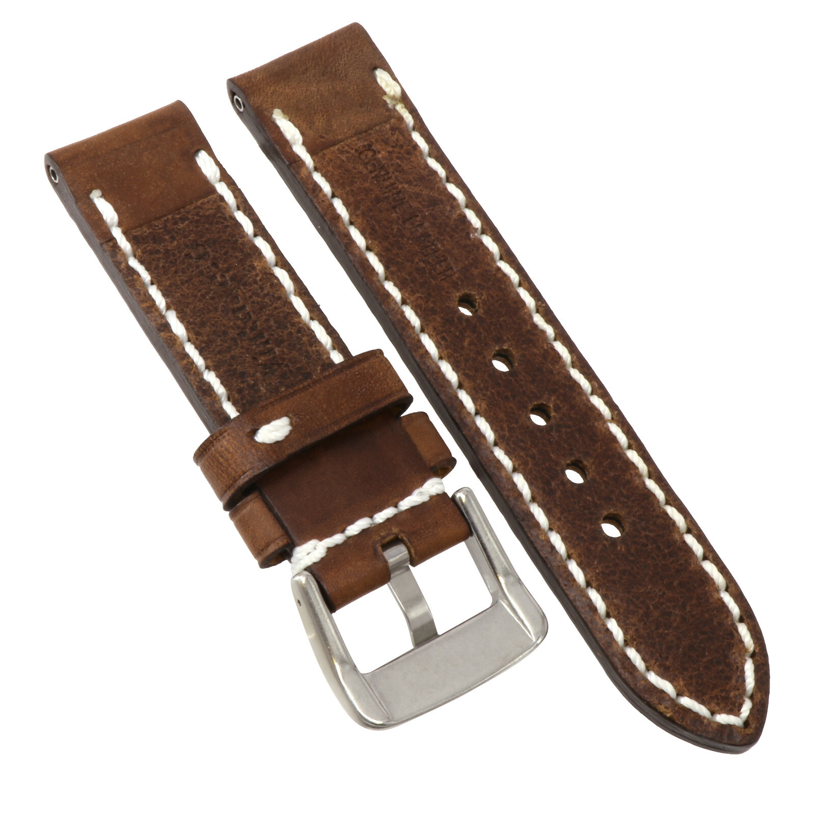22mm NEW COW Leather Strap Brown Watch Band for fits PANERAI White Tang x1 A