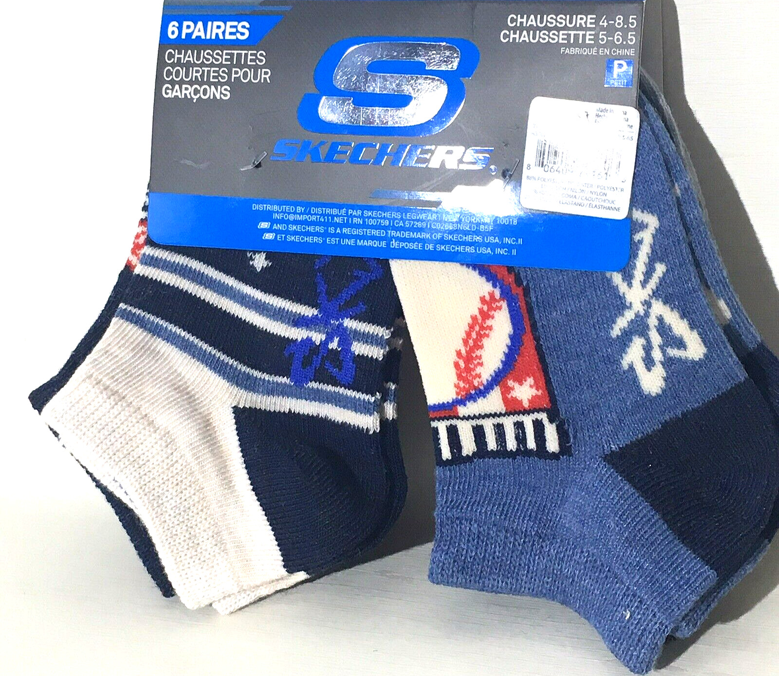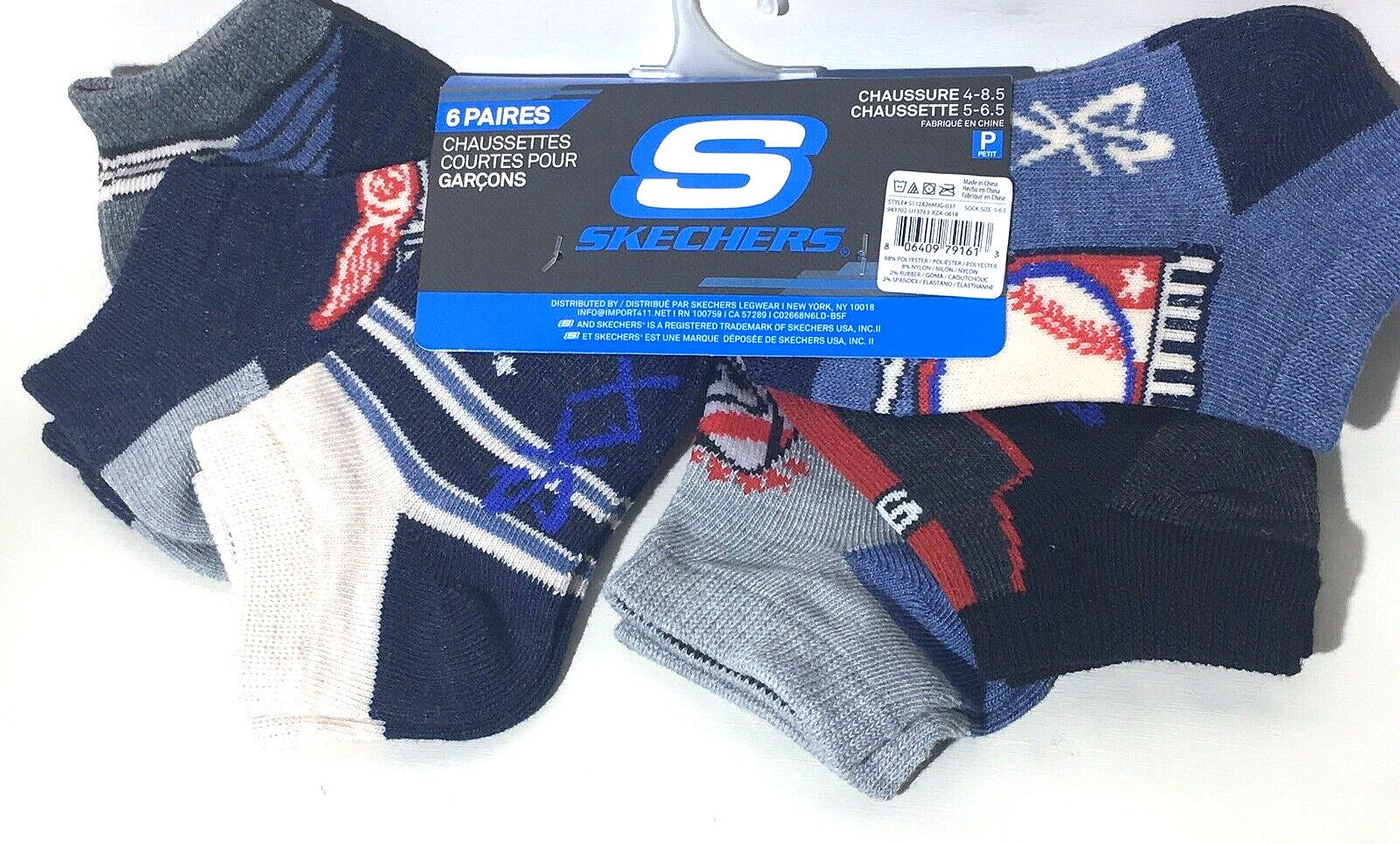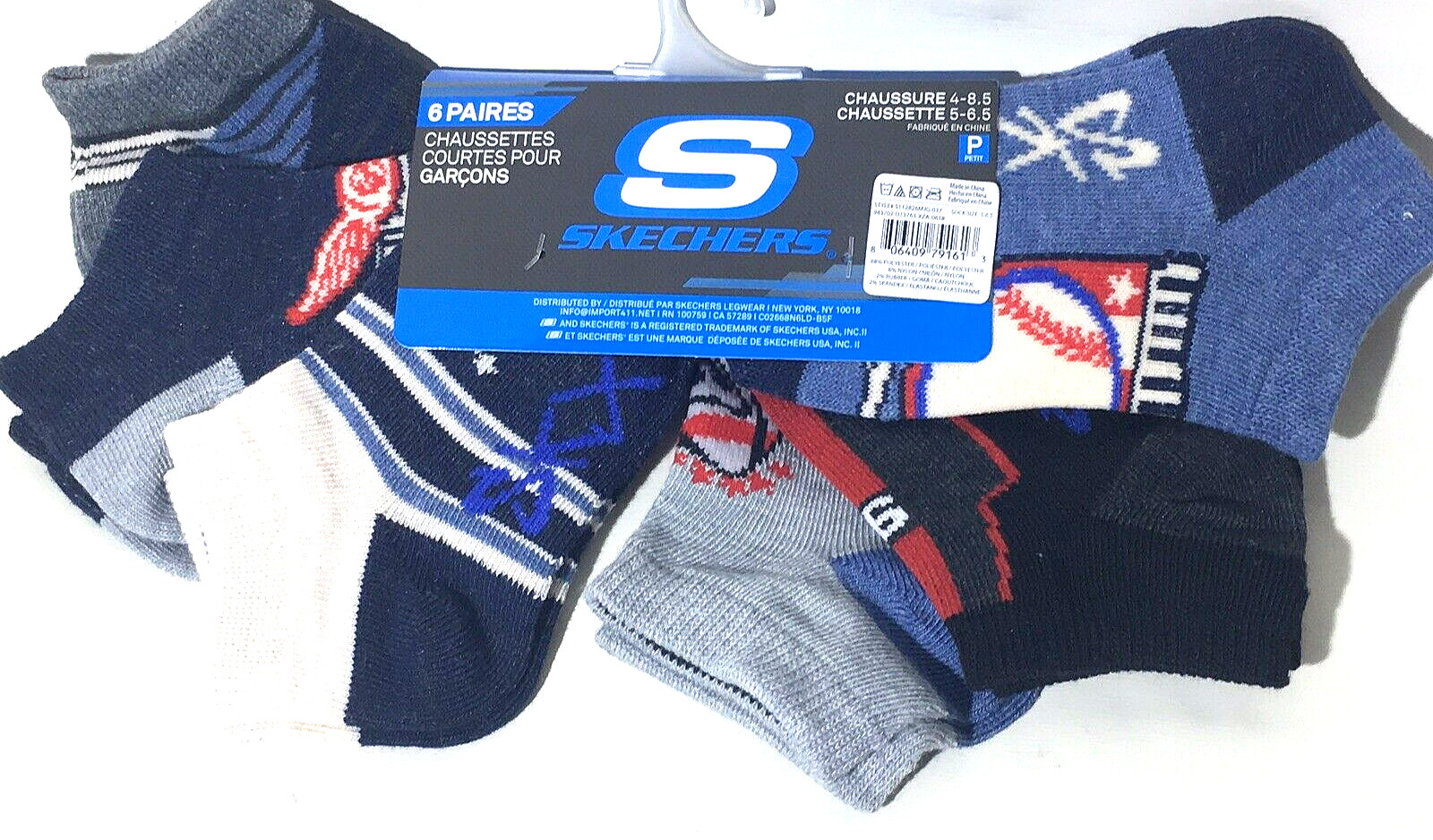 Skechers Boys Low Cut Socks SZ Small Blue 6-Pk SKX Sport Football