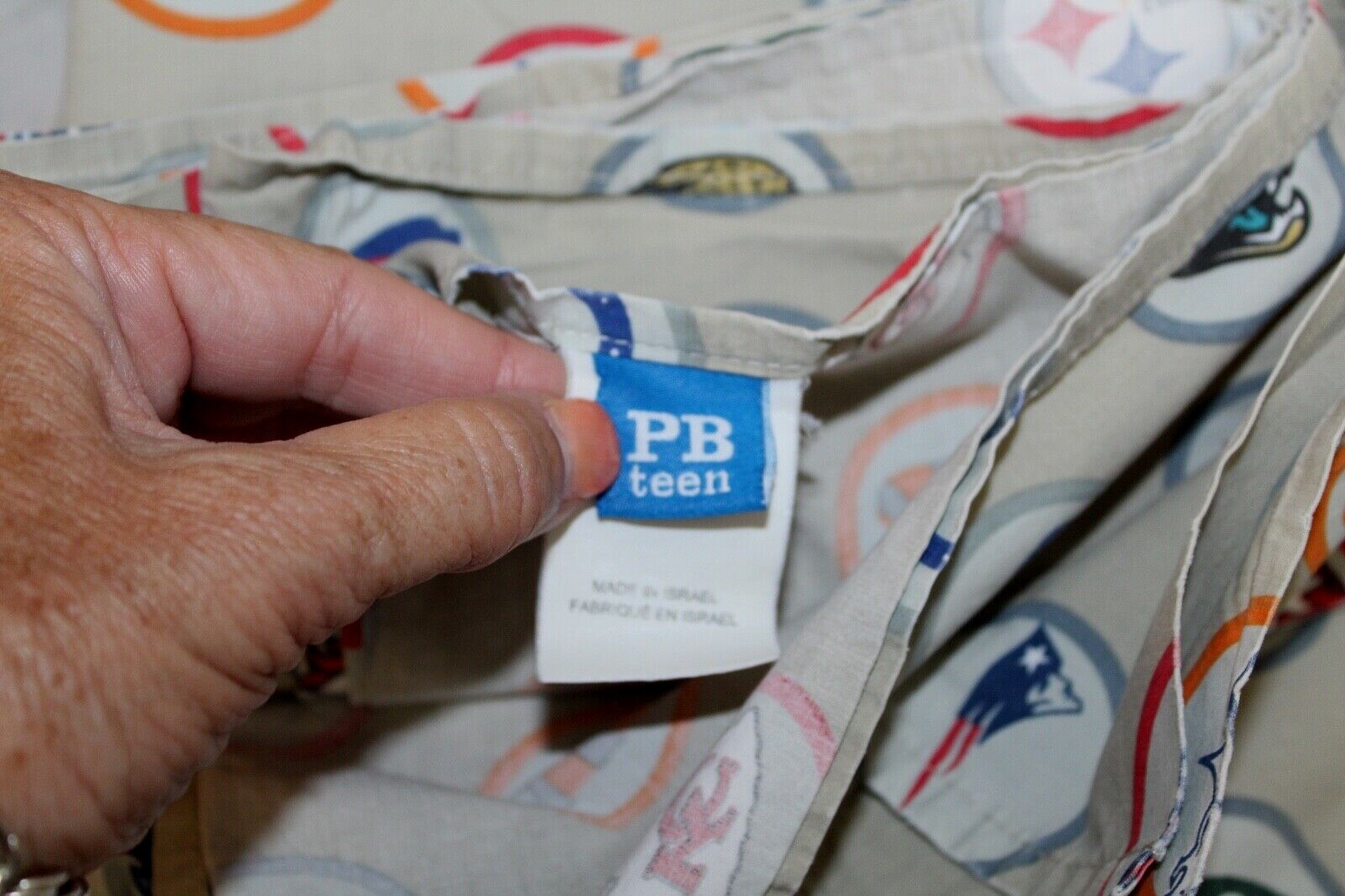Pottery Barn Teen PB Teen NFL Football Twin Sheet Set Fitted Flat khaki