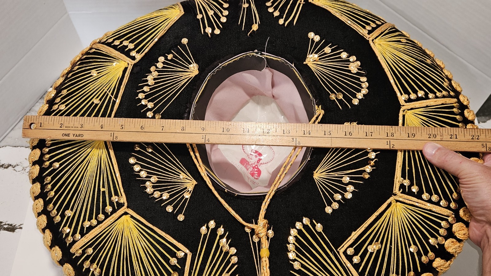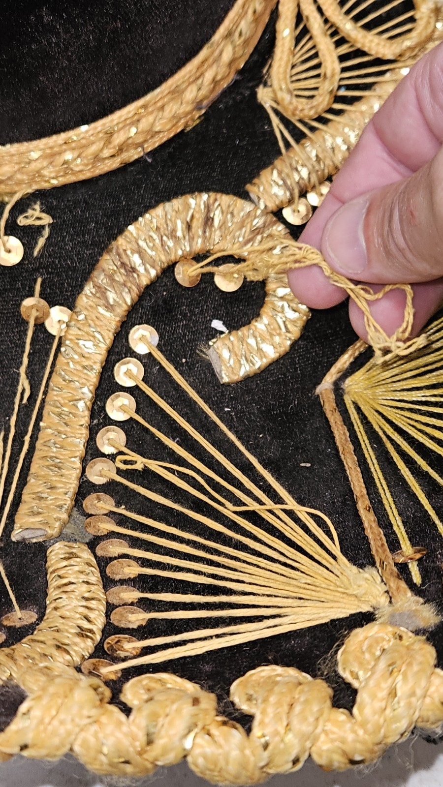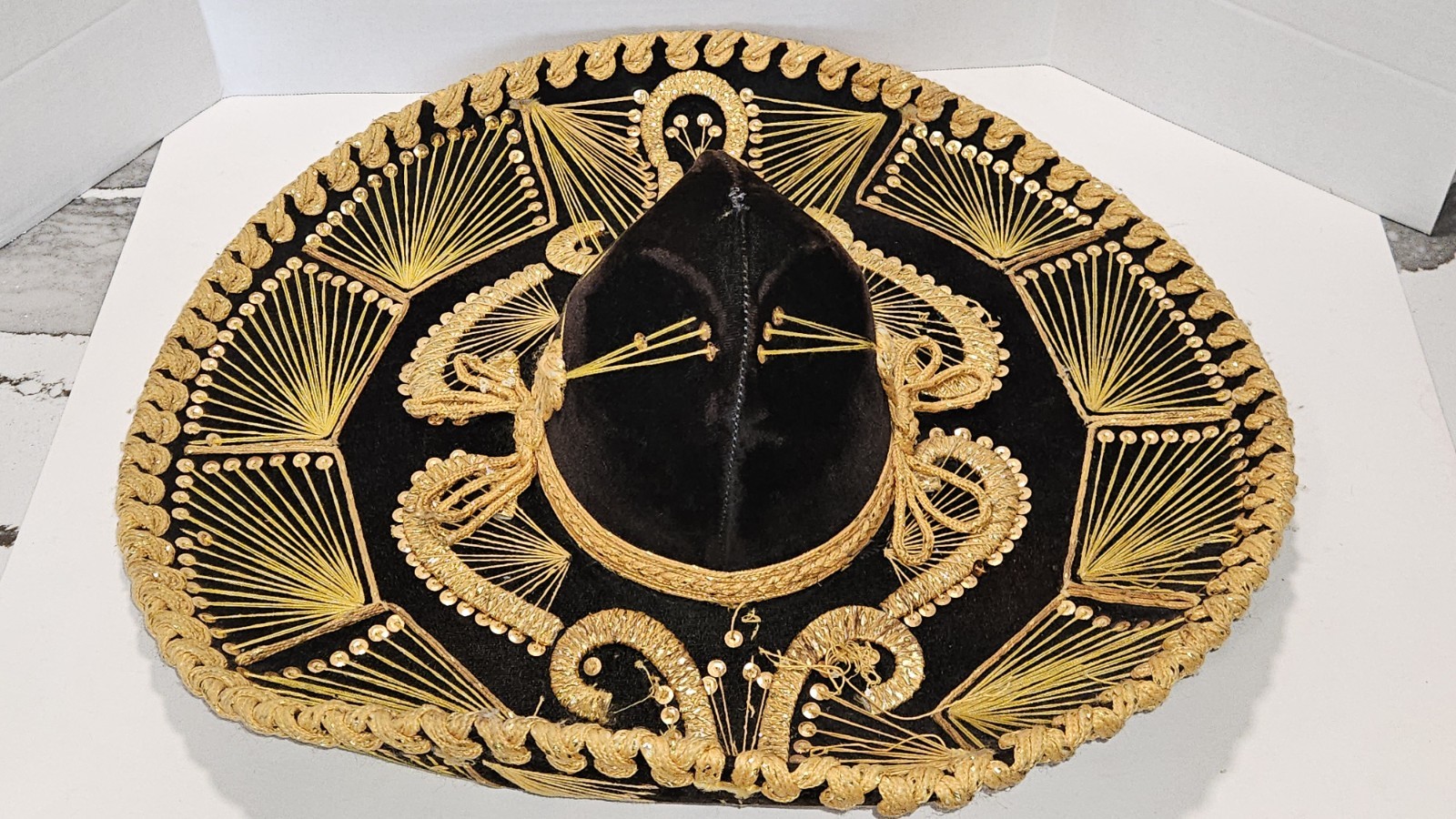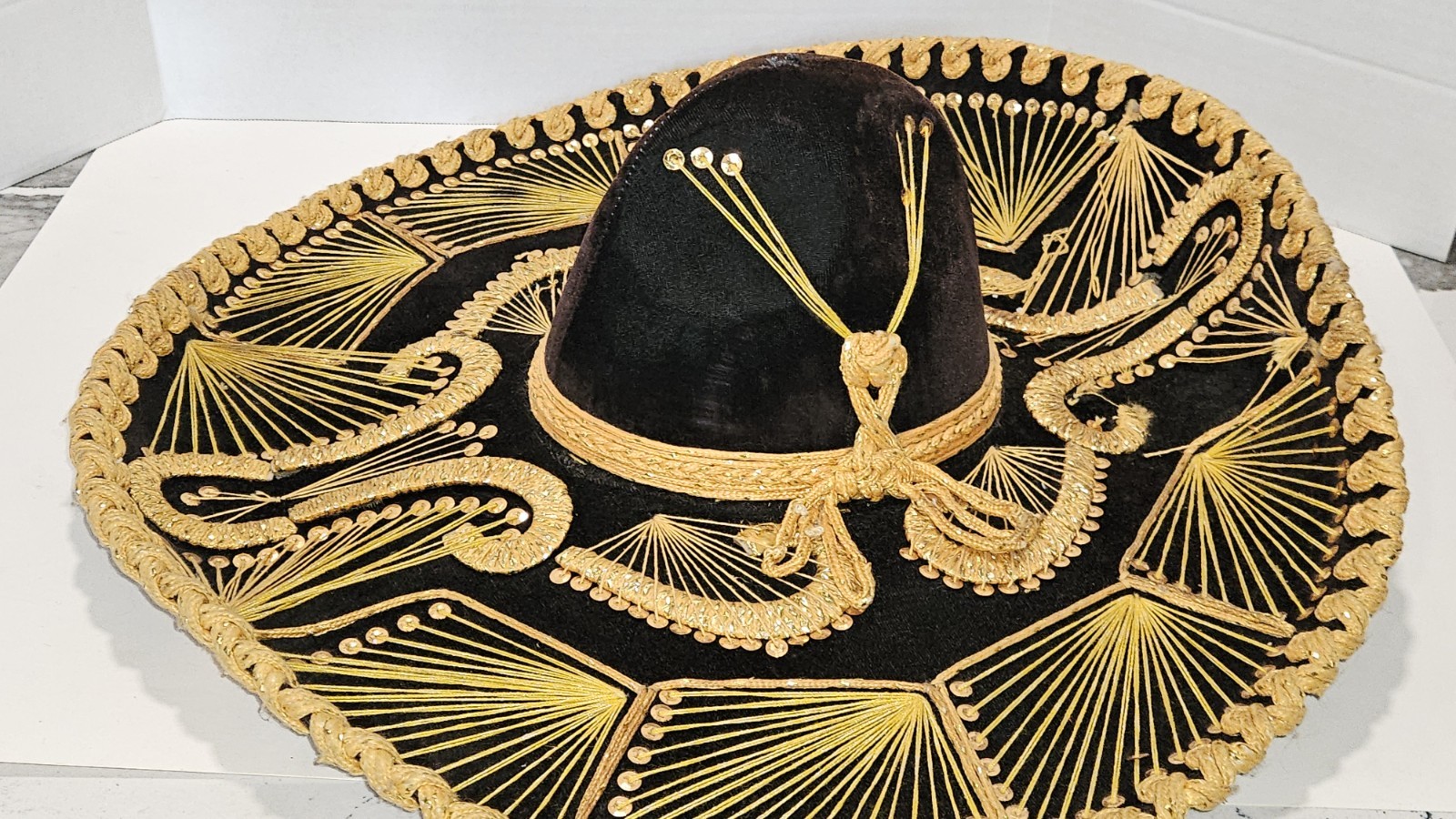 как выглядит Vintage L. Guerrero Sombrero Made in Mexico Black Velvet Gold Sequin фото