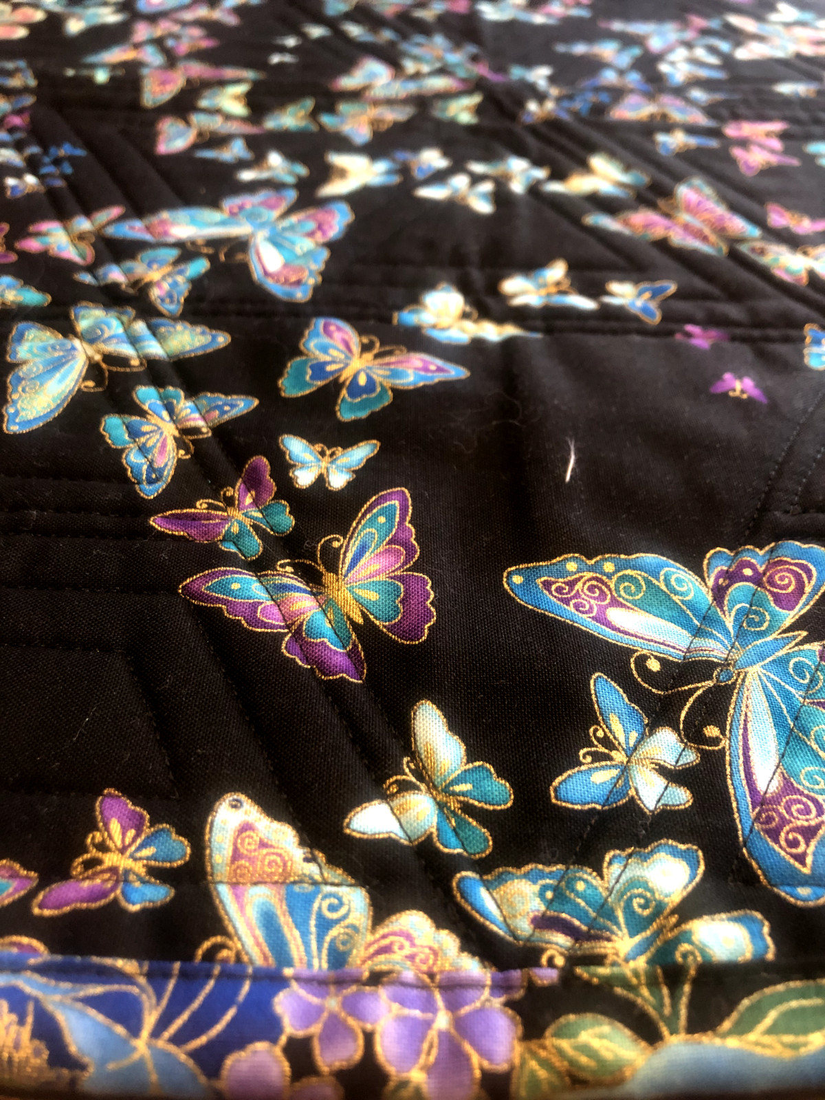 как выглядит Handmade Quilted 25" Hexagonal Table Topper  Reversible Floral Butterfly фото