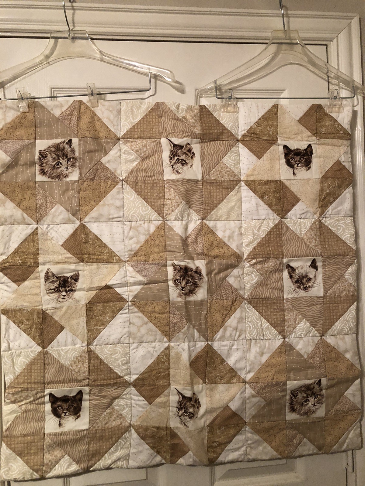 New Handmade Tan Cotton Patchwork Cats 31x32 Baby Changing Pad W Matching Bag