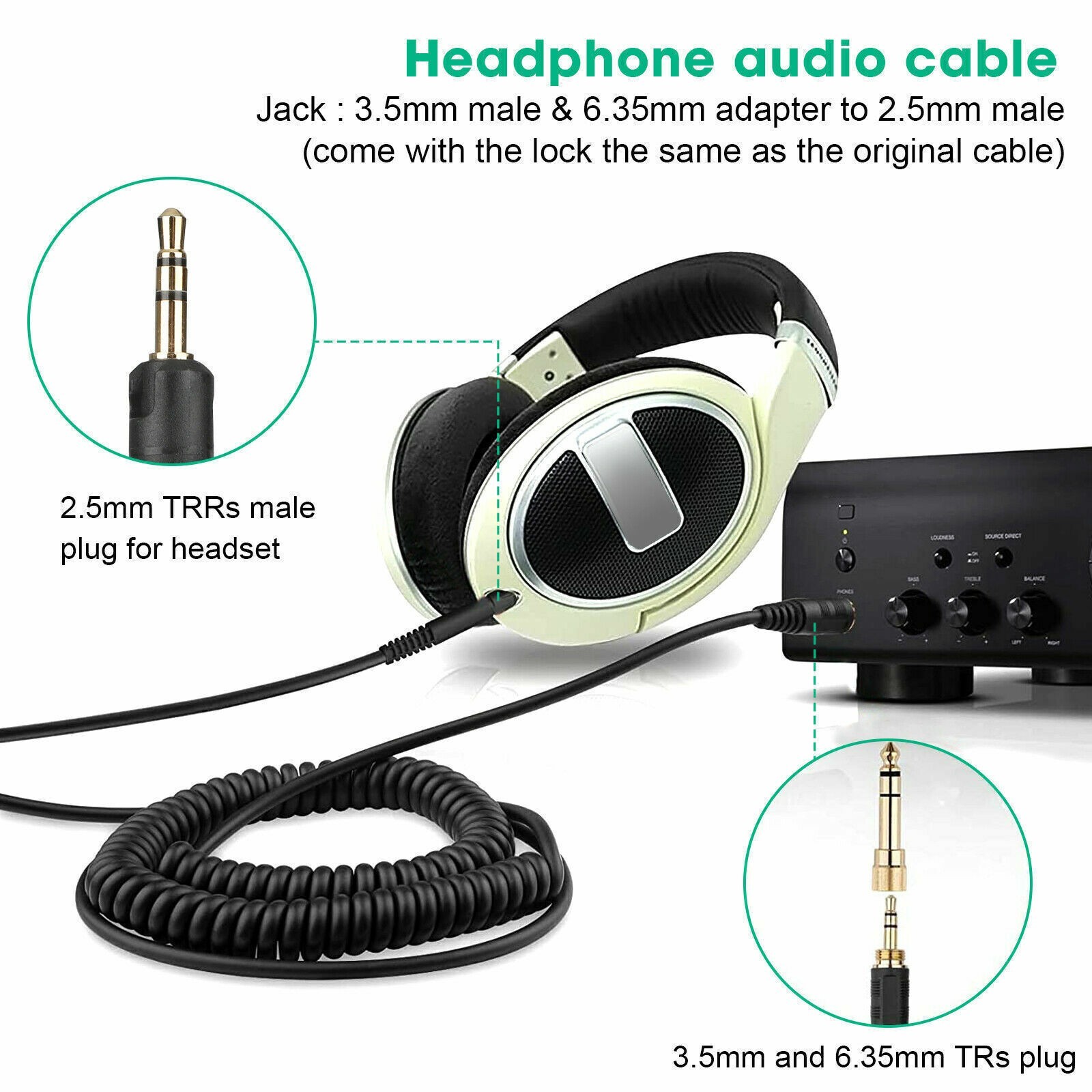 Replacement Spring Cable 6.35mm to 3.5mm Adapter for ATH-M40X M50X M70X Headset