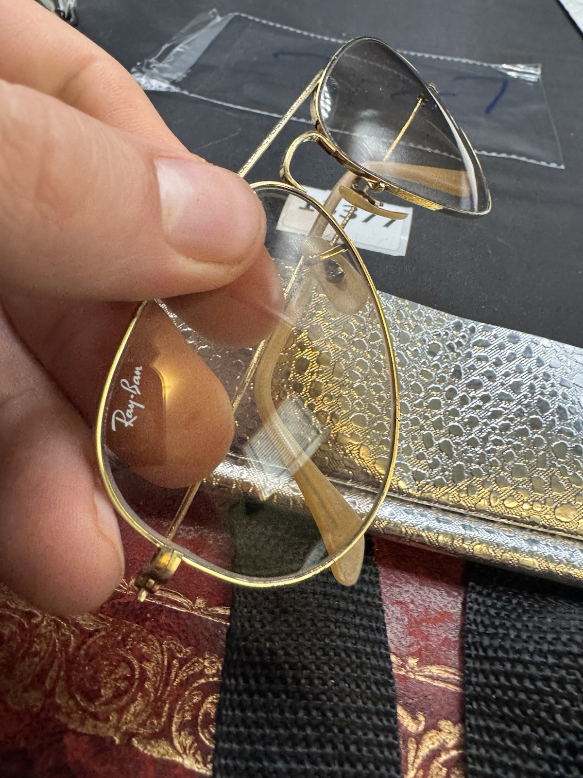 как выглядит Bausch Lomb USA Ray-Ban Aviator 58-14 BL Vintage Gold Sunglasses Frames Brown фото