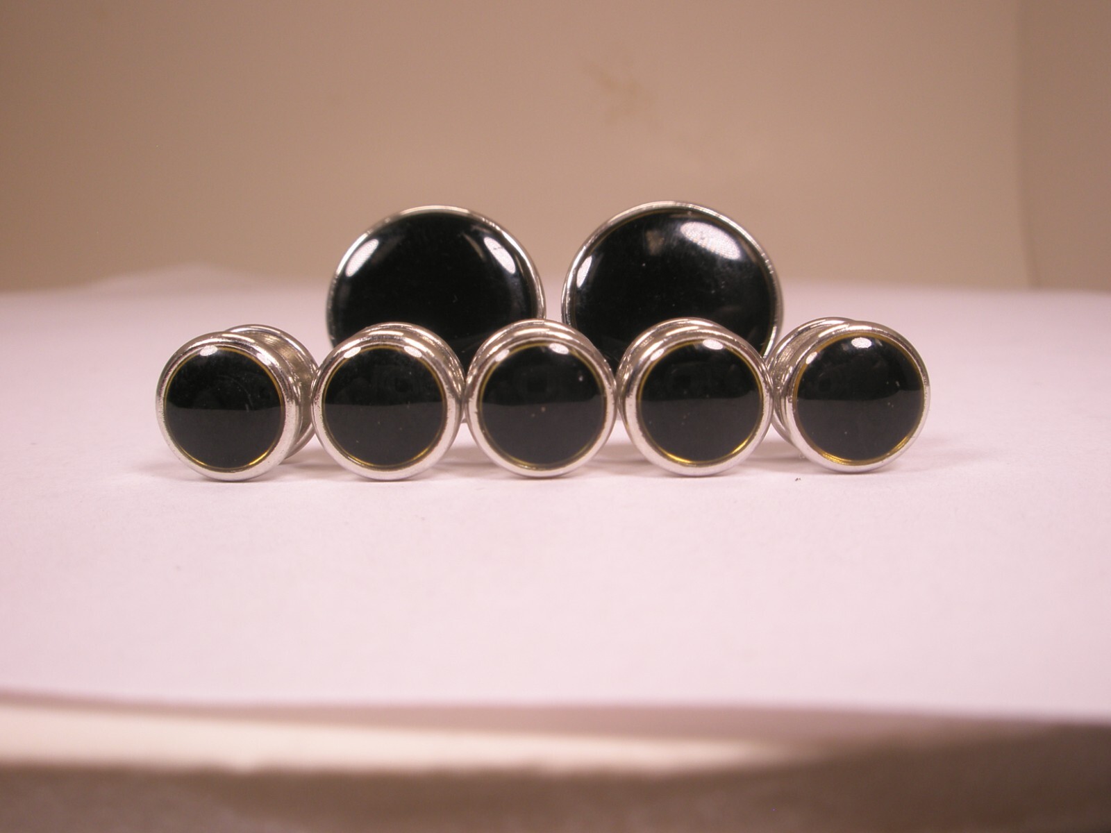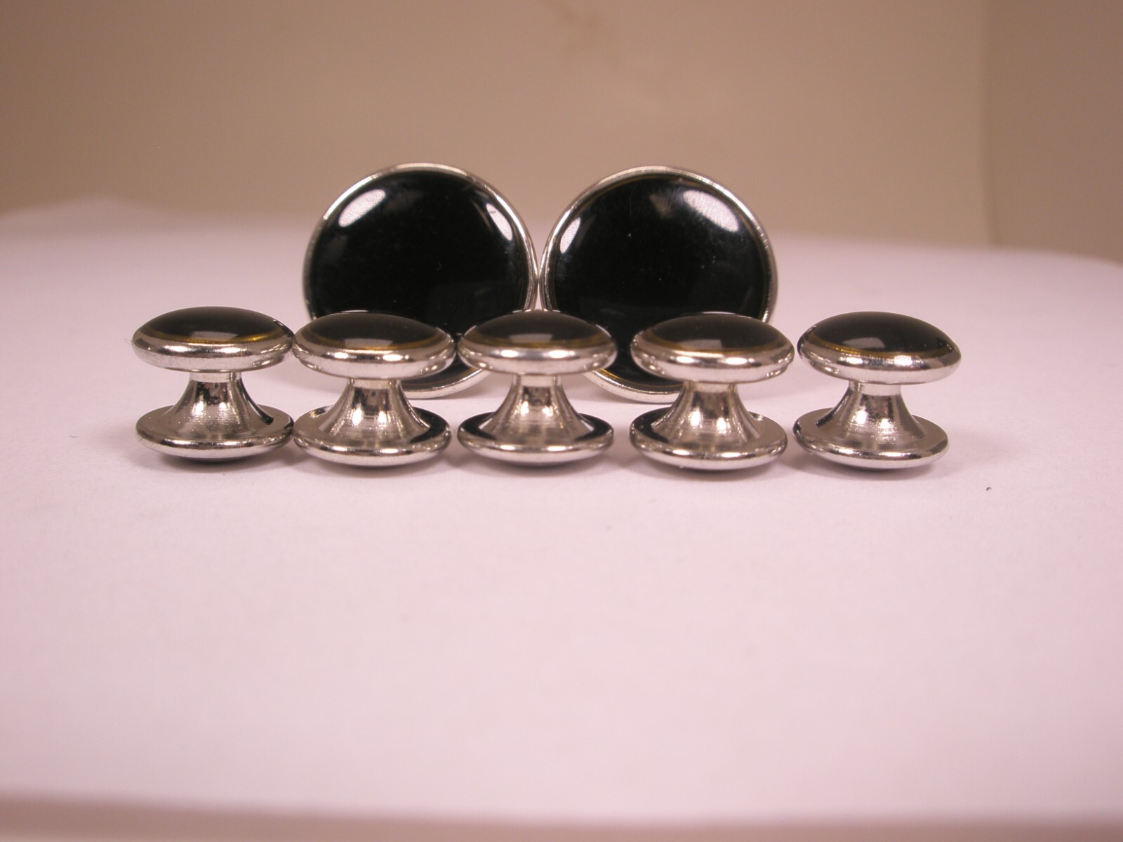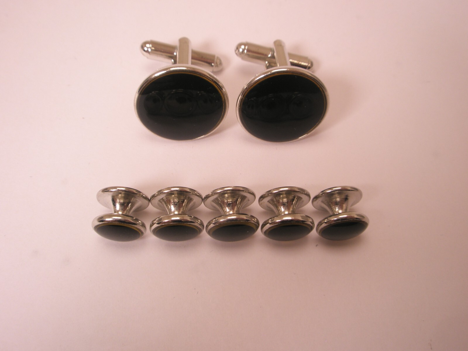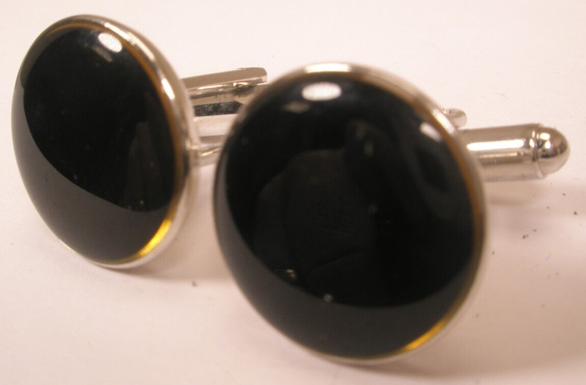 Round Black Silver Tone Vintage Formal Cuff Links Tux Prom Shirt Studs p53