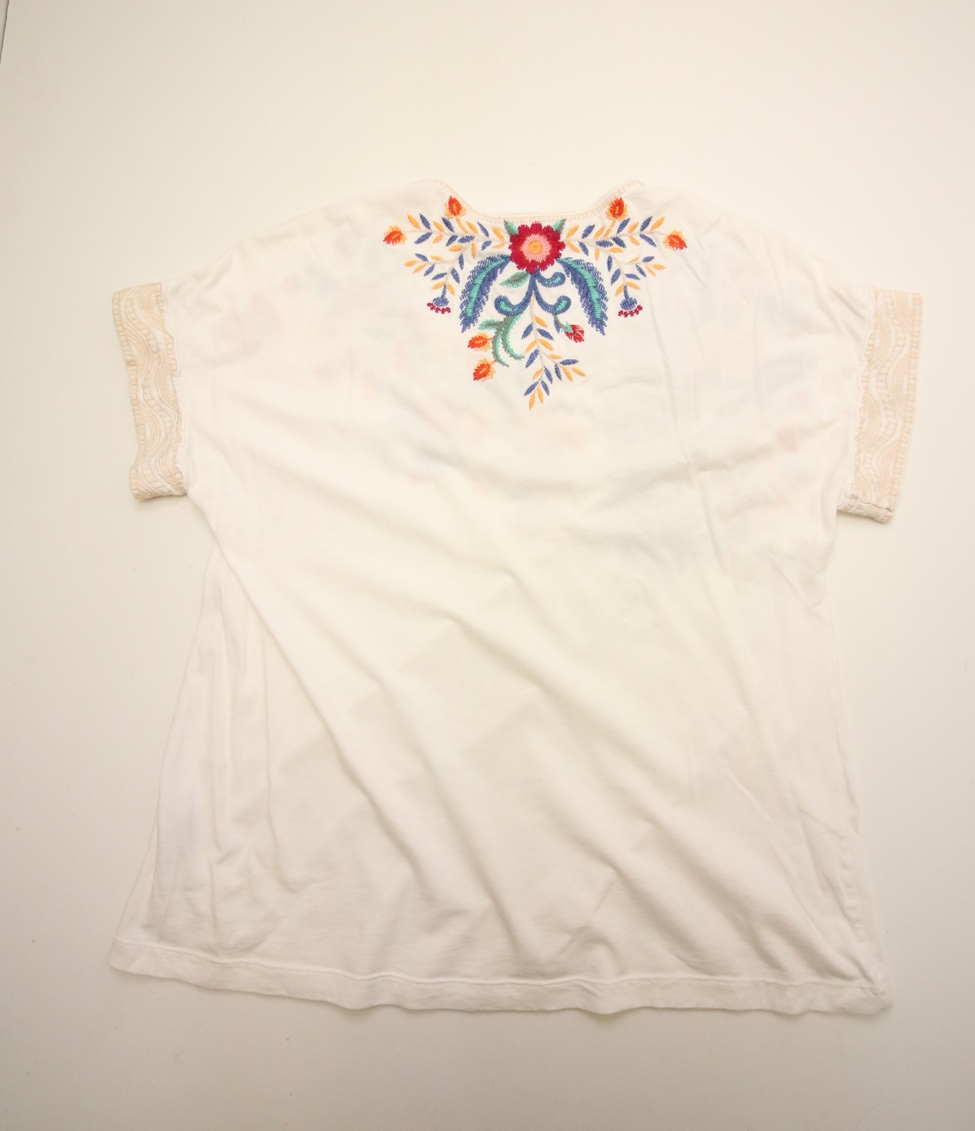 как выглядит Johnny Was embroidered Floral Bird Top Tee Cotton Womens M READ Flaw small hole фото