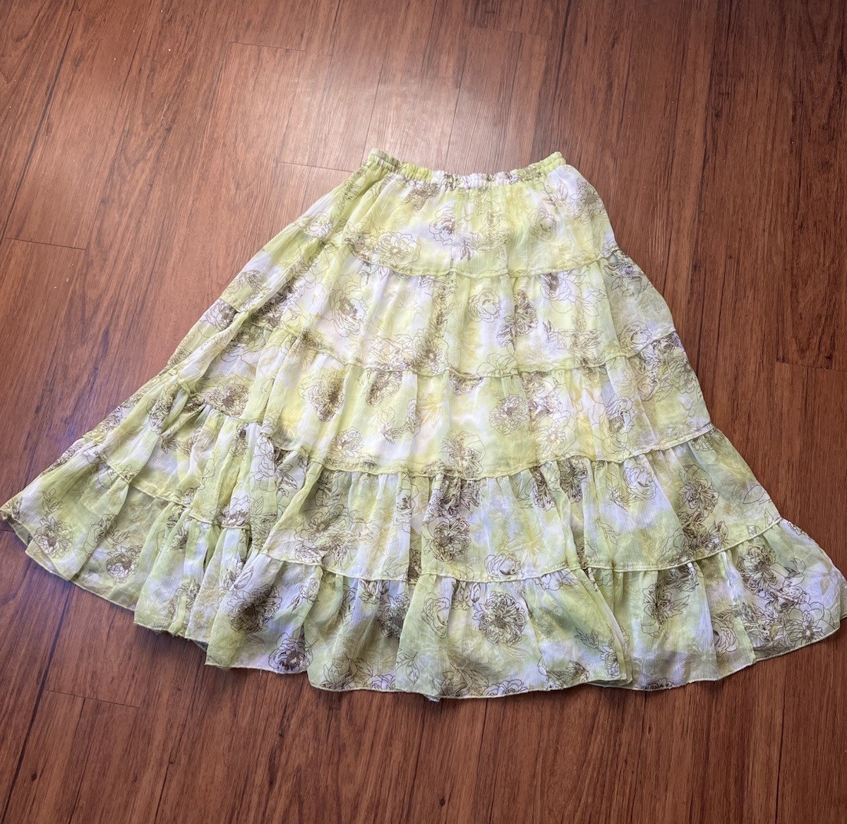 Vintage Y2K 90s Tiered Maxi Skirt Large Green Layered Chiffon Whimsigoth Boho