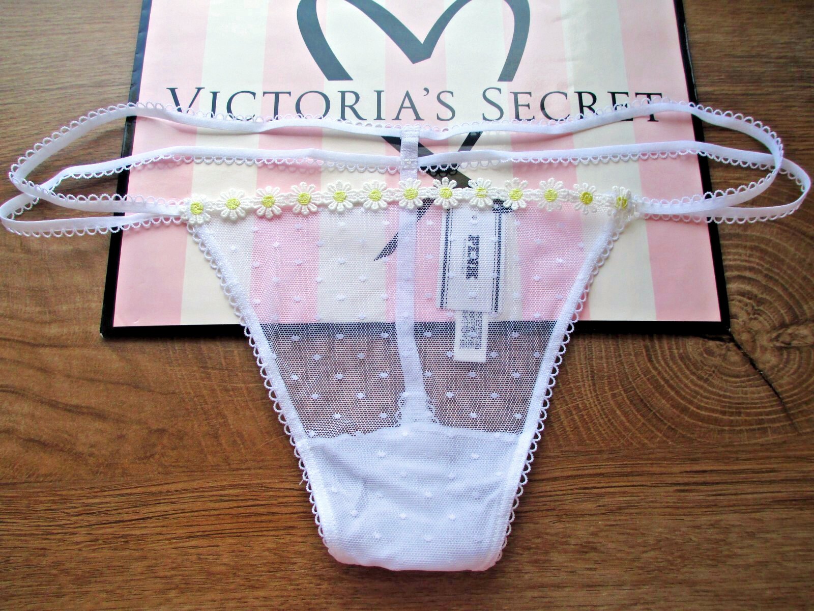 как выглядит Victorias Secret PINK - M Wink White Mesh Daisy Strappy V-String Panty - Thong фото