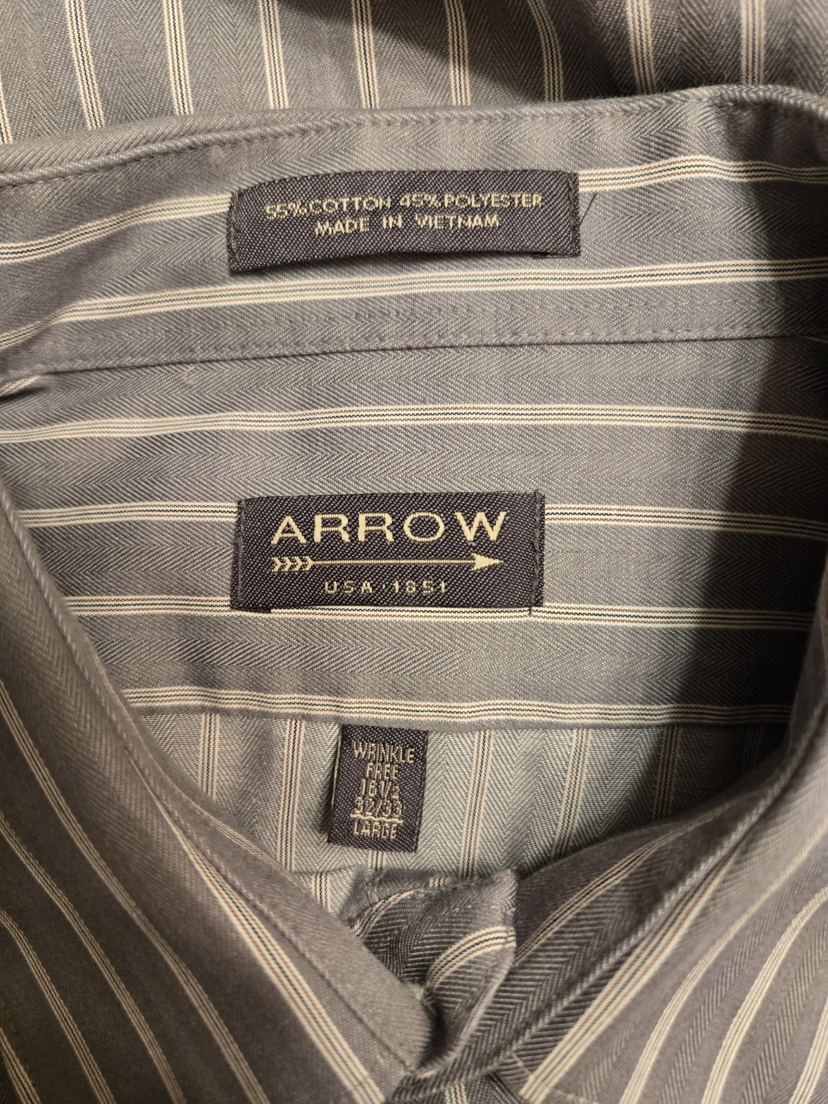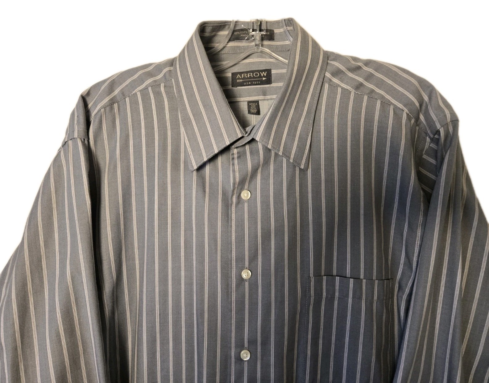 Arrow Wrinkle Free Cotton Blend Gray Striped Dress Shirt Long Sleeve 16.5-32/33