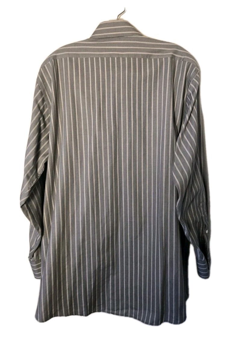 как выглядит Arrow Wrinkle Free Cotton Blend Gray Striped Dress Shirt Long Sleeve 16.5-32/33 фото