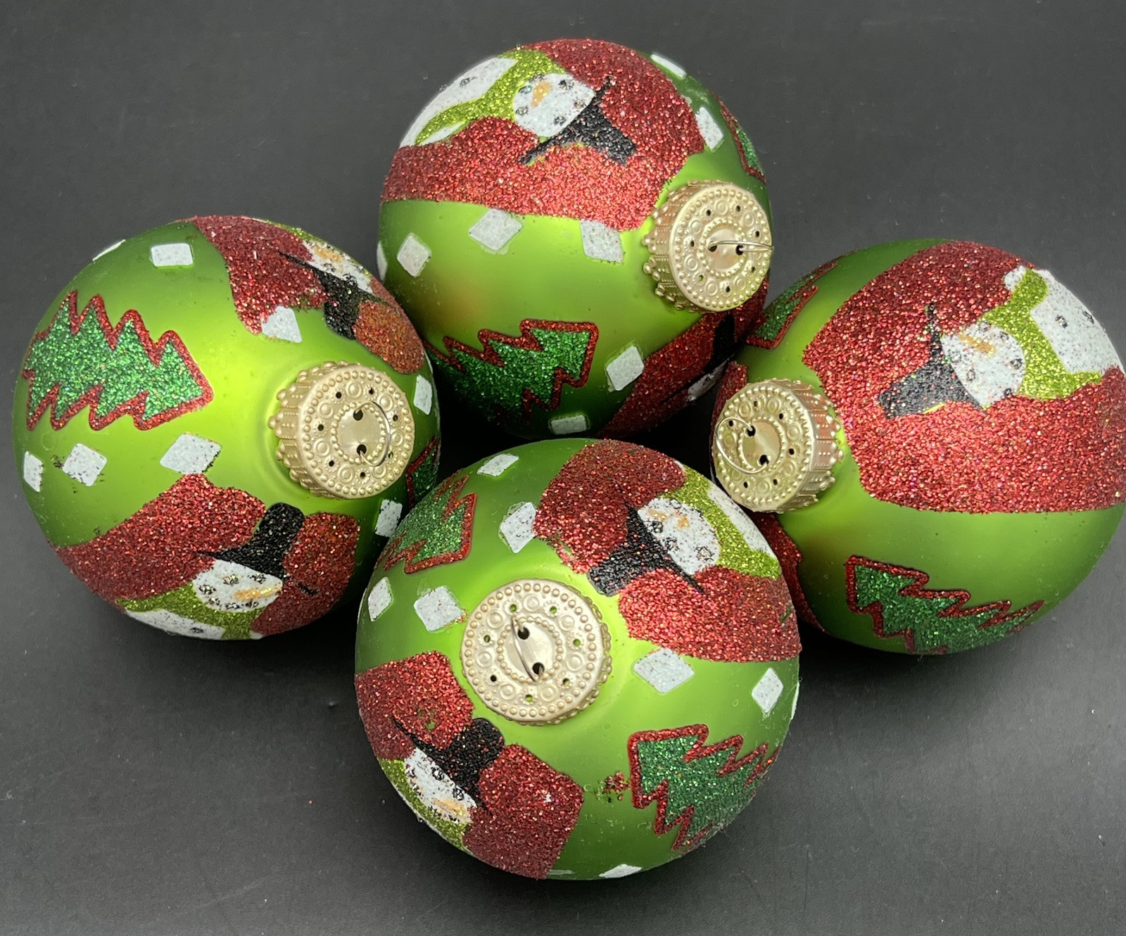 VTG Lot 4 Green Glass Christmas Tree Ornaments Balls Glitter Hand Painted 2.5"