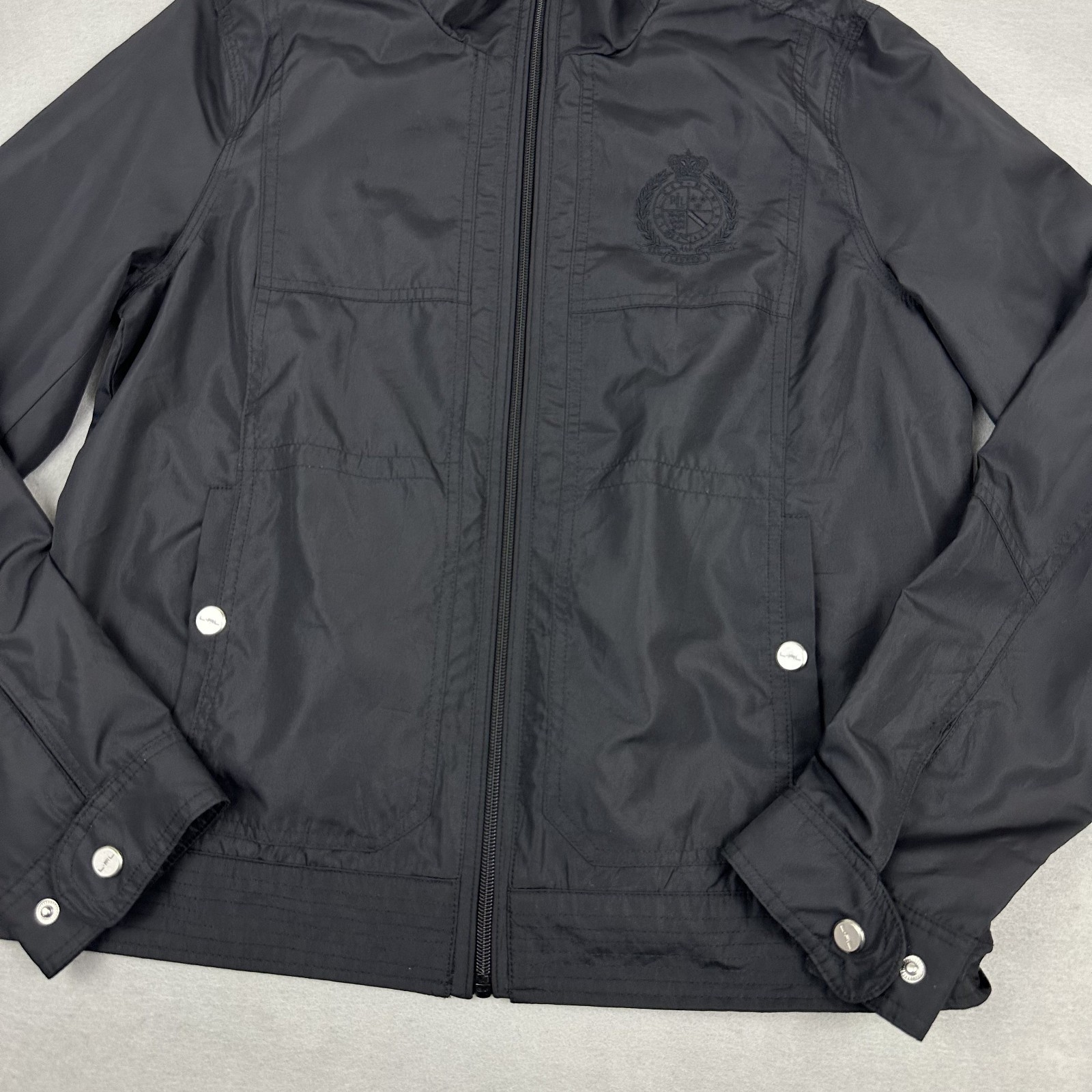 как выглядит Ralph Lauren Active Jacket Women Medium Black Zip LRL Crest Windbraker Pockets M фото