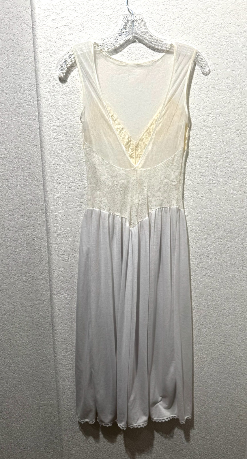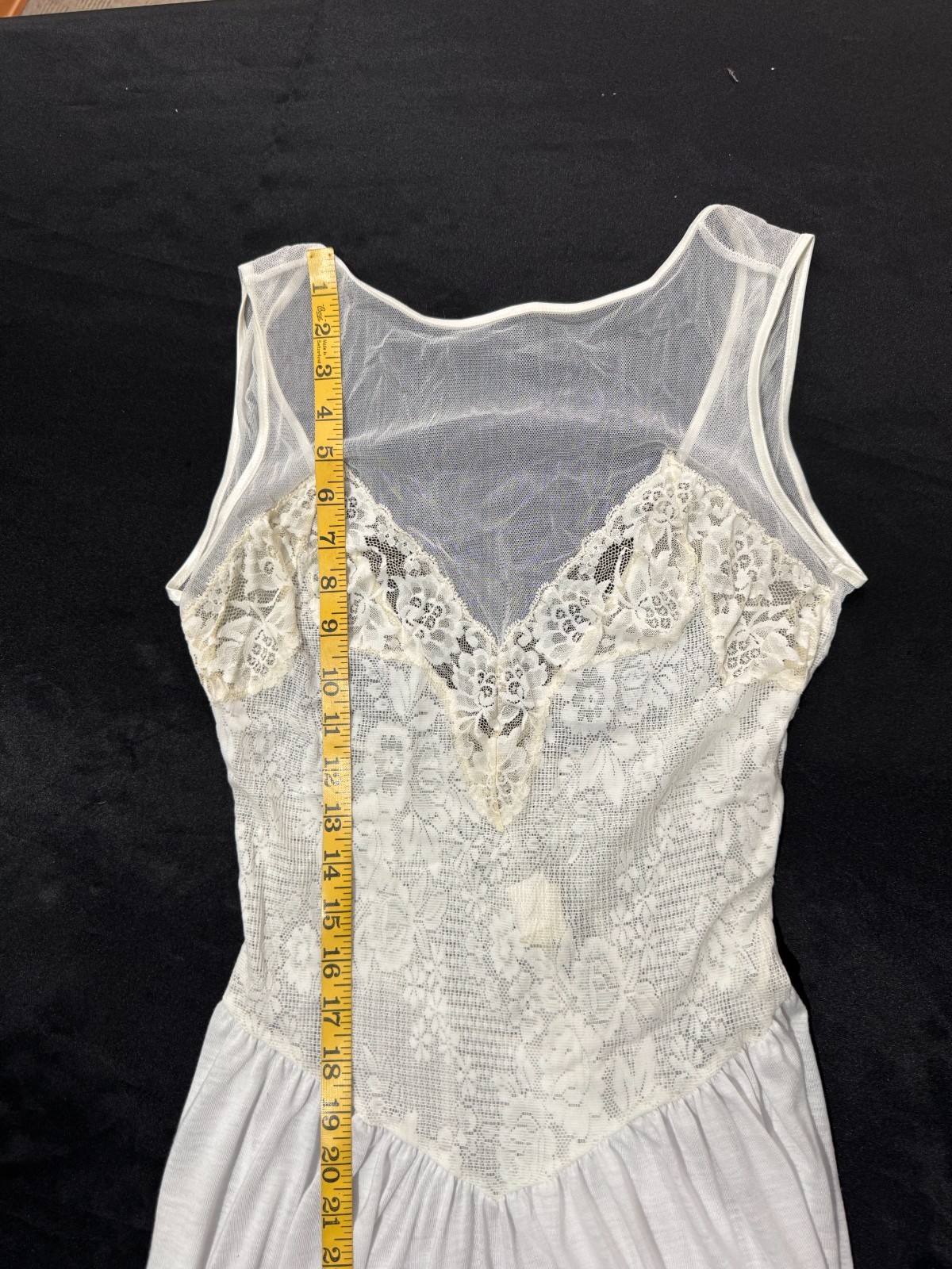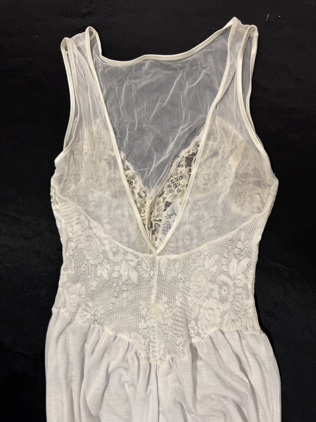 80s Vtg Victoria's Secret Gold Label White Lace Mesh Nightgown Slip Dress Knit