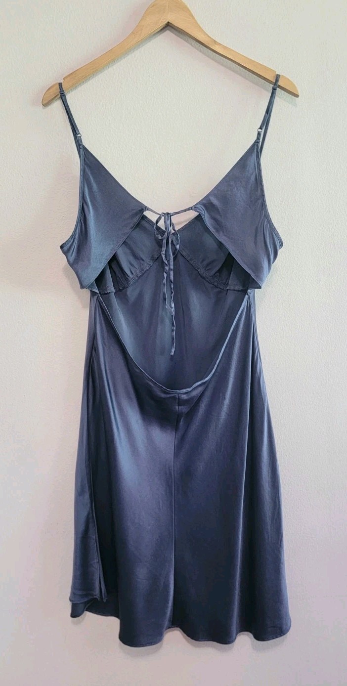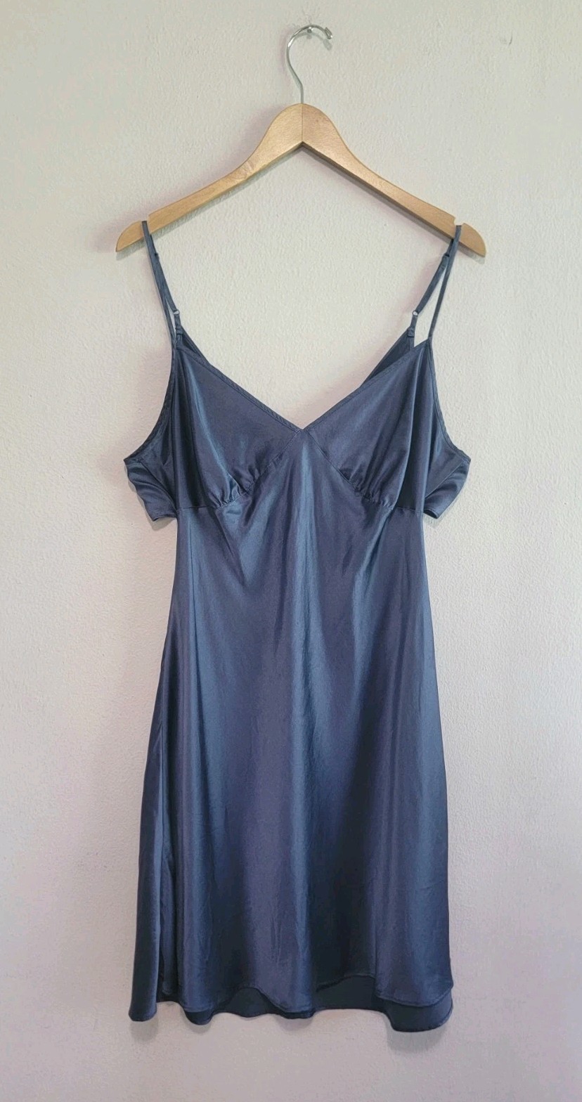 Vintage Y2K Victoria's Secret Blue Silk Babydoll Keyhole Tie Back Slip Nightie L