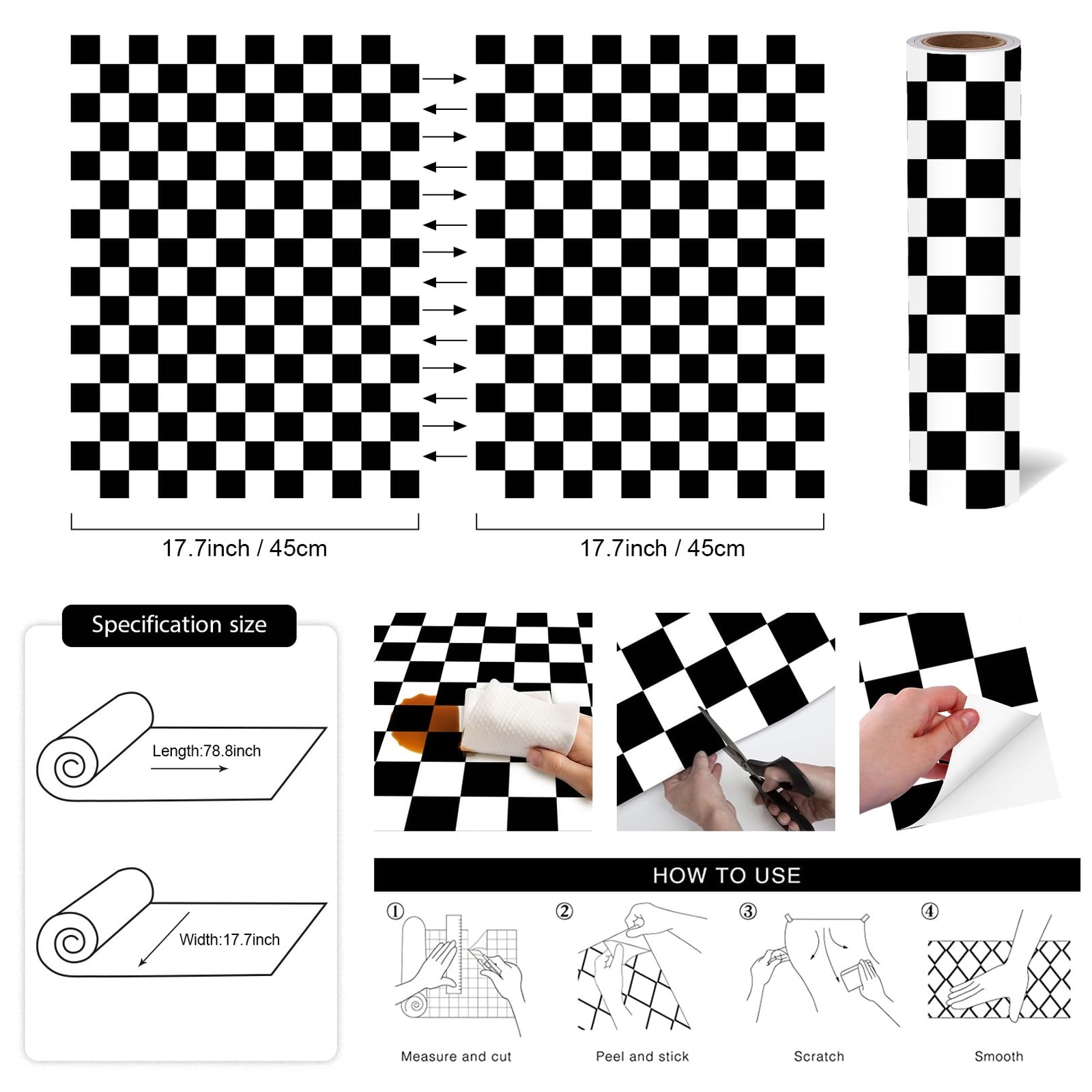 Modern Peel and Stick Wallpaper Black and White Mosaic Checkered Contact Pape...