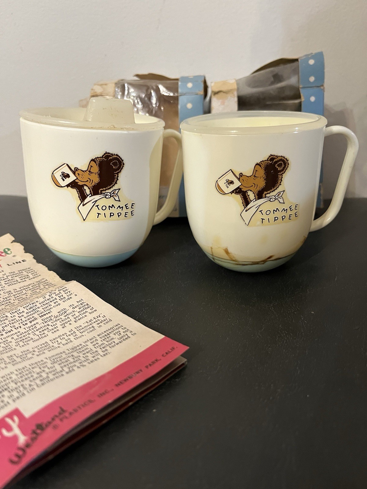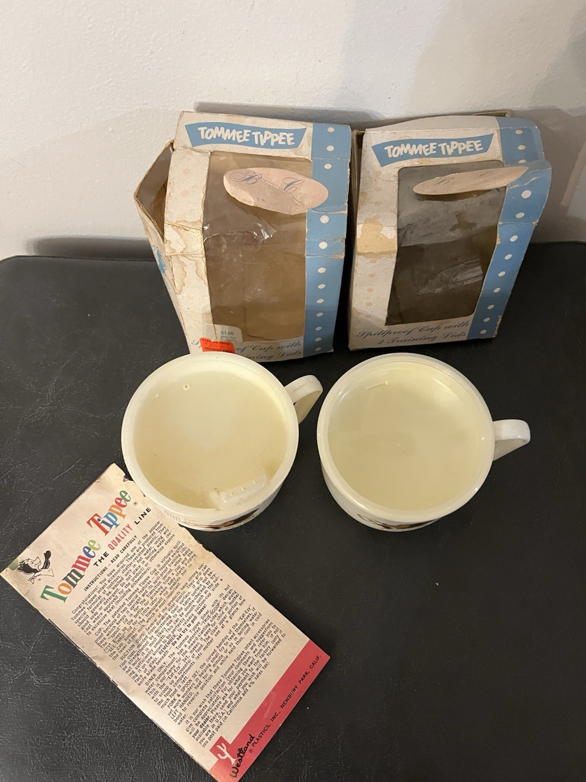 Vintage Tommee Tippee Sippy Cup With Weighted Base Original Box Set 2 Paperwork