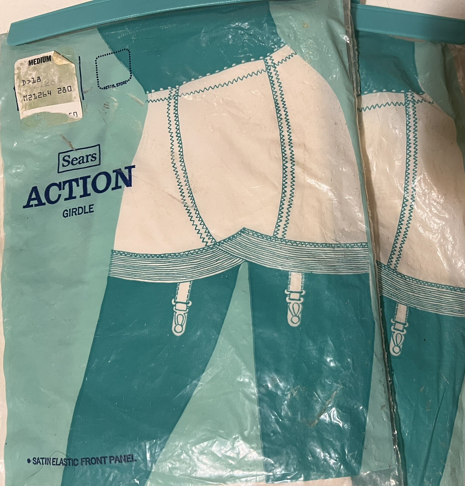 как выглядит Vtg NOS Sears Metal Garter Open Bottom Girdle White Satin Panel Medium фото