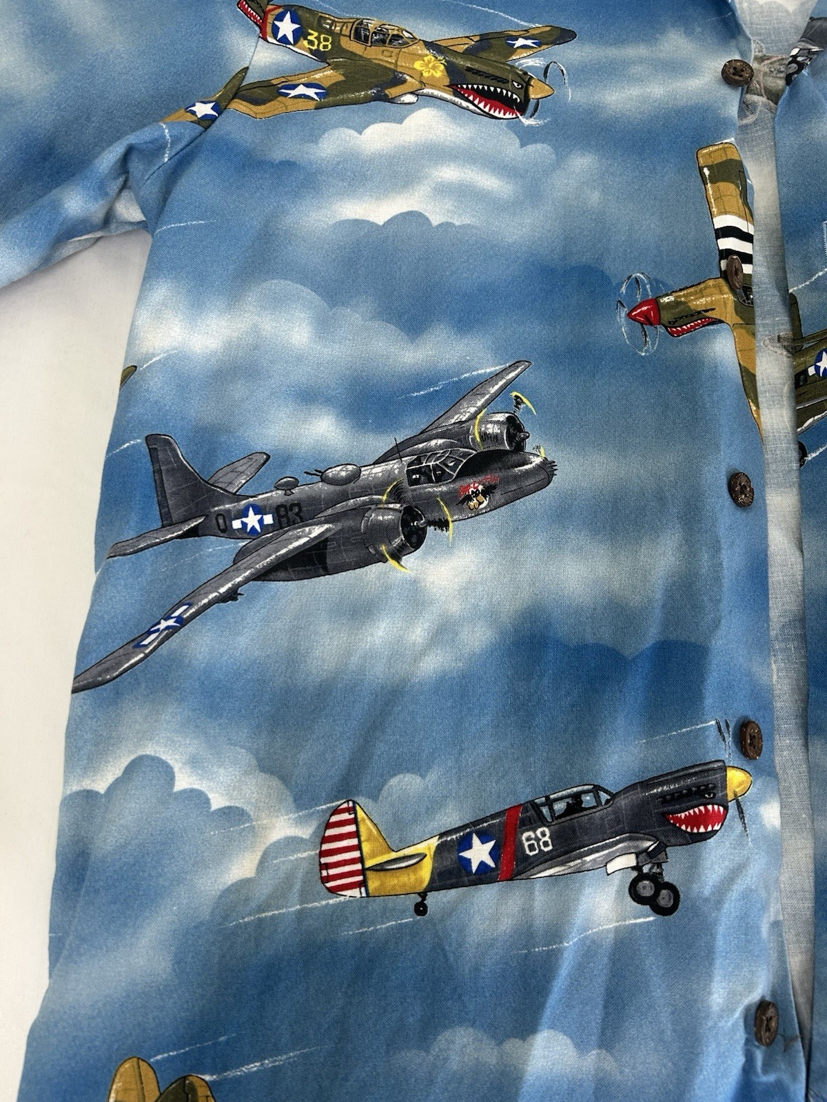 как выглядит Fighter Airplane Mens Hawaiian Shirt blue SZ M Vintage фото