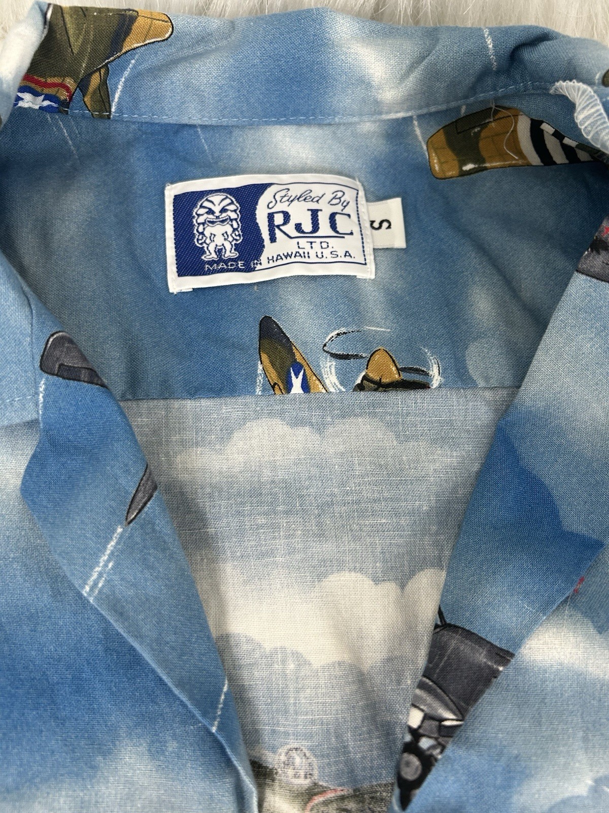 Fighter Airplane Men's Hawaiian Shirt blue SZ M Vintage