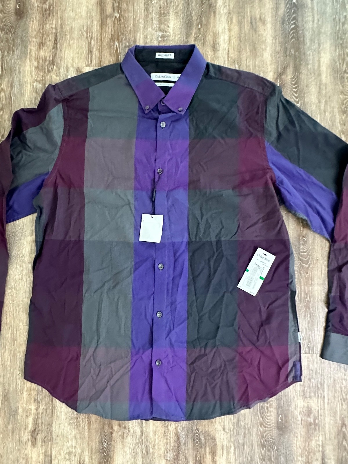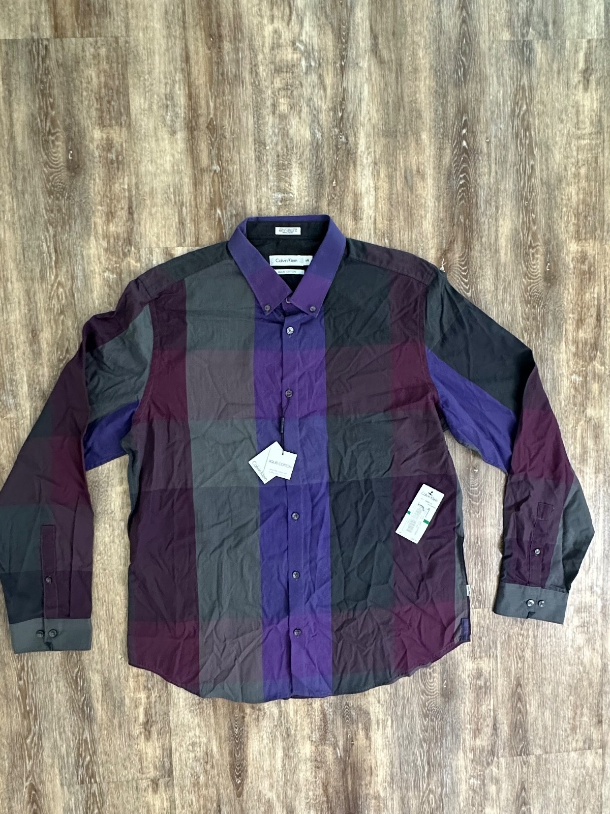 Calvin Klein Dress Shirt Men's L Liquid Cotton Long Sleeve Button Down NWT