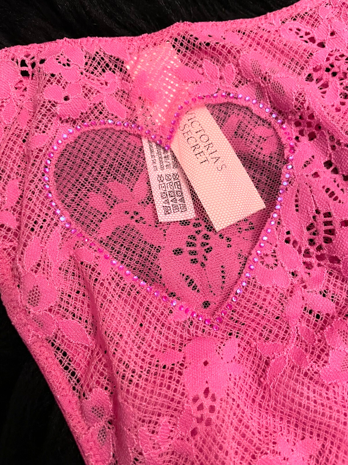 Victoria's Secret Dream Angels - L Pink Rhinestone Heart Brazilian Panty - Large