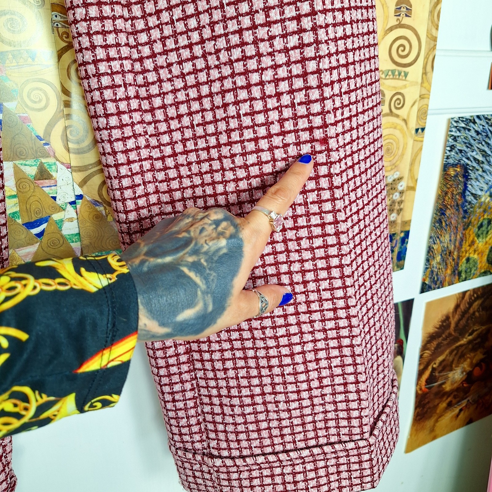как выглядит Vintage 70s High Waist Plaid Pants Womens XS 24x30 Pink Burgundy Disco Hippie фото
