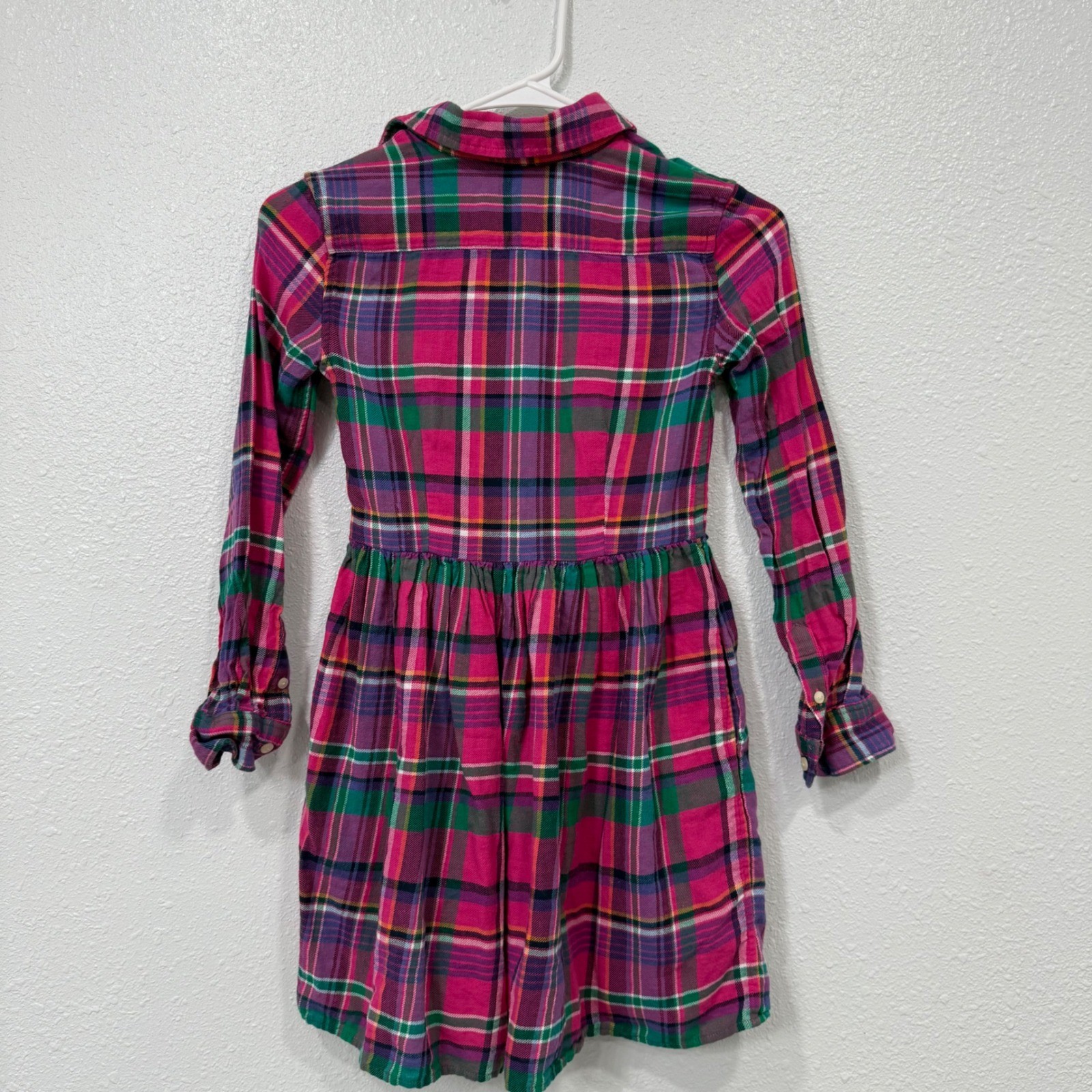 Girls Polo Ralph Lauren Plaid Button Down Shirt Dress Size 8 Pink Green Purple